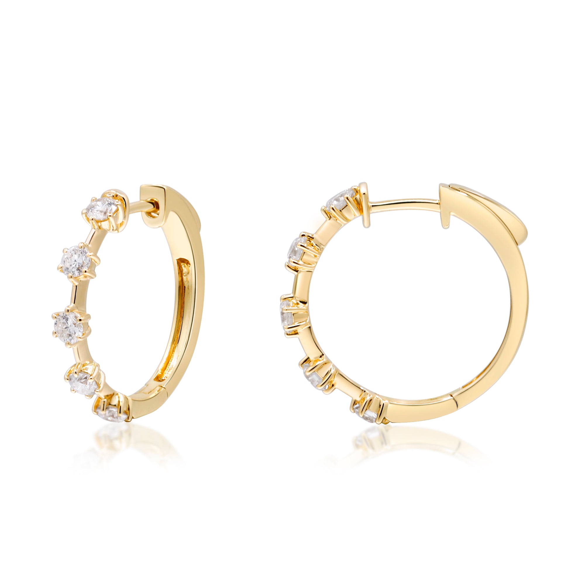 Decorate yourself in elegance with this Earring is crafted from 14K Yellow Gold by Gin & Grace. This Earring is made up Round-Cut White Diamond (10 pcs) 0.92 Carat. This Earring is weight 4.01 grams. This delicate Earring is polished to a high finish shine.