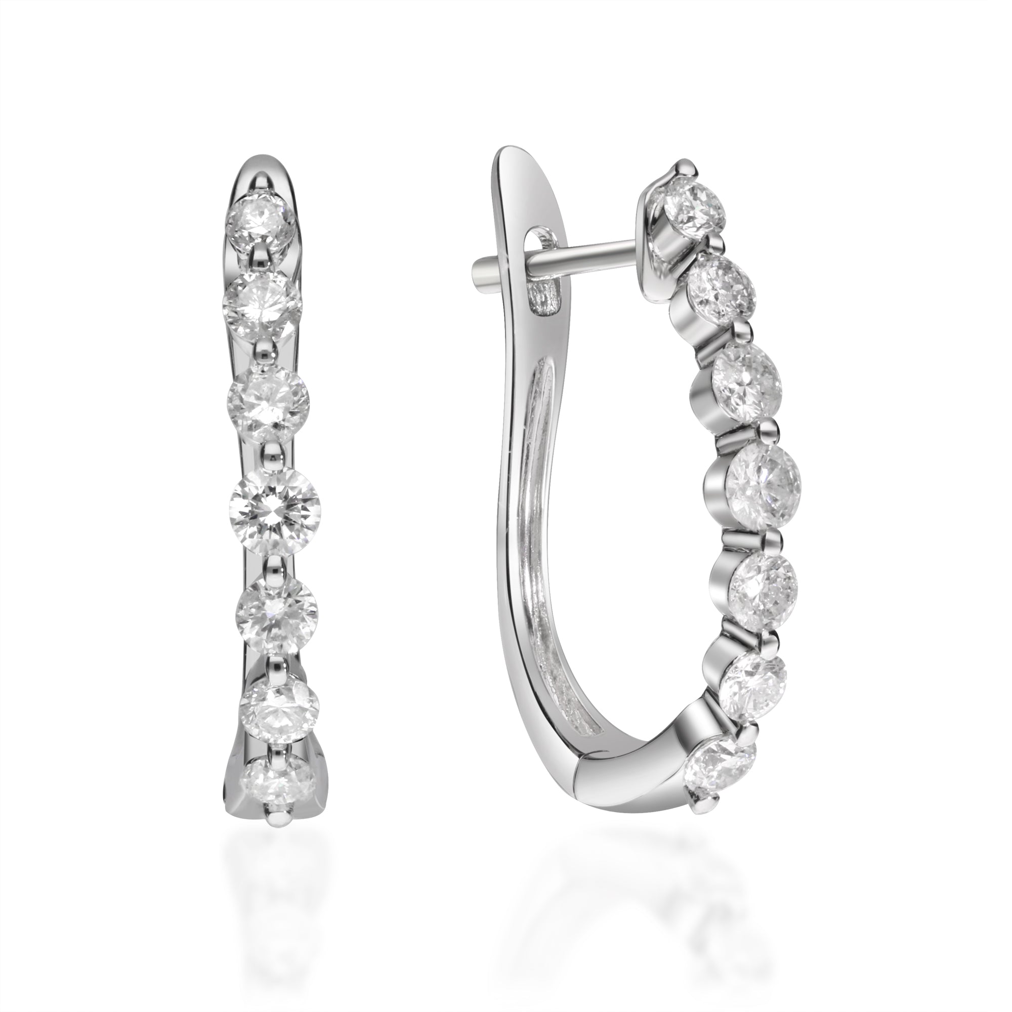 The focal point of these earrings is the stunning array of round-cut natural white diamonds. With 14 diamonds in a prong setting, totaling 0.75 carats, these diamonds exude brilliance and sparkle. The prong setting allows for maximum light exposure, enhancing the natural beauty of the diamonds and creating a captivating display of light.