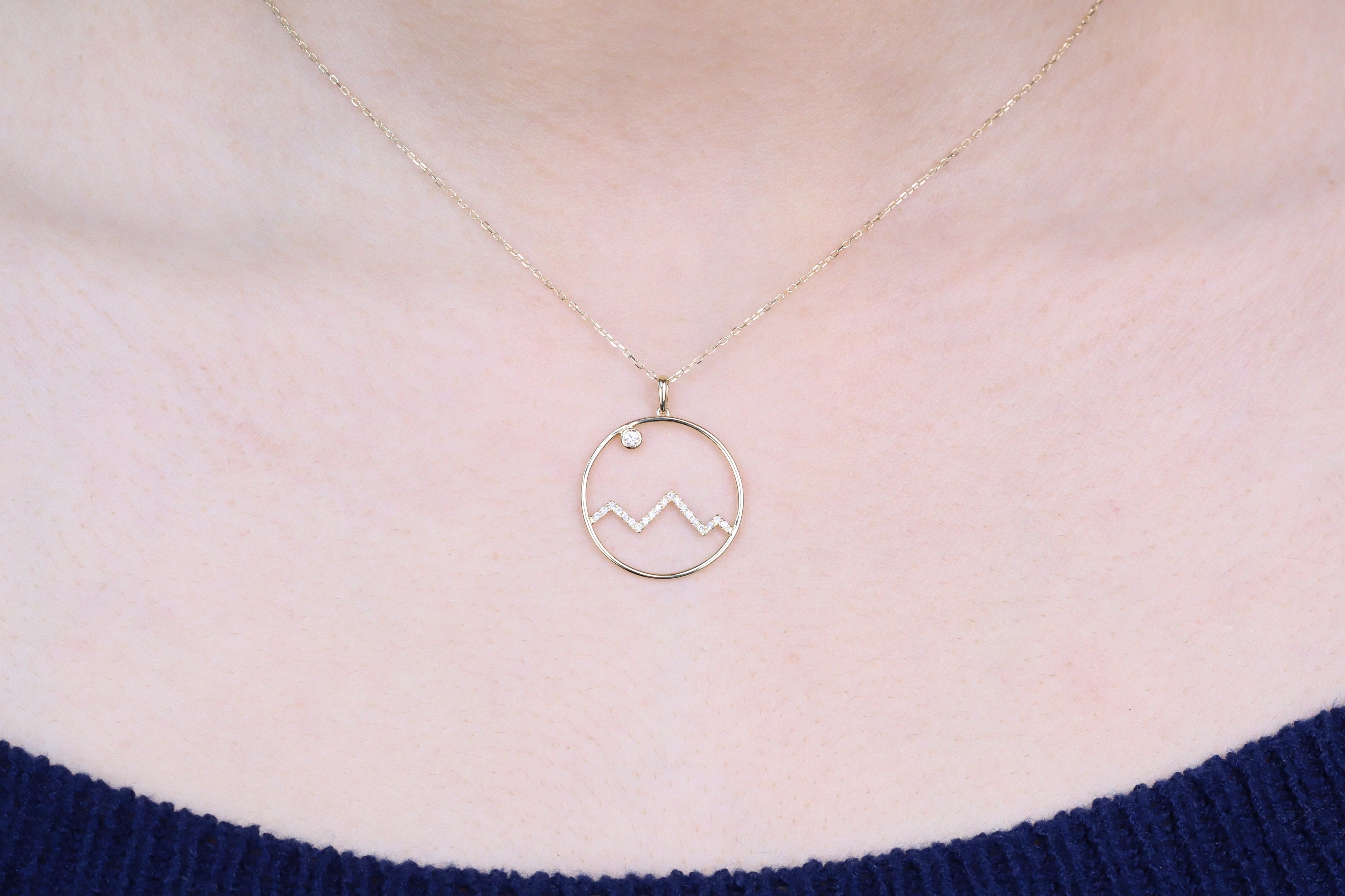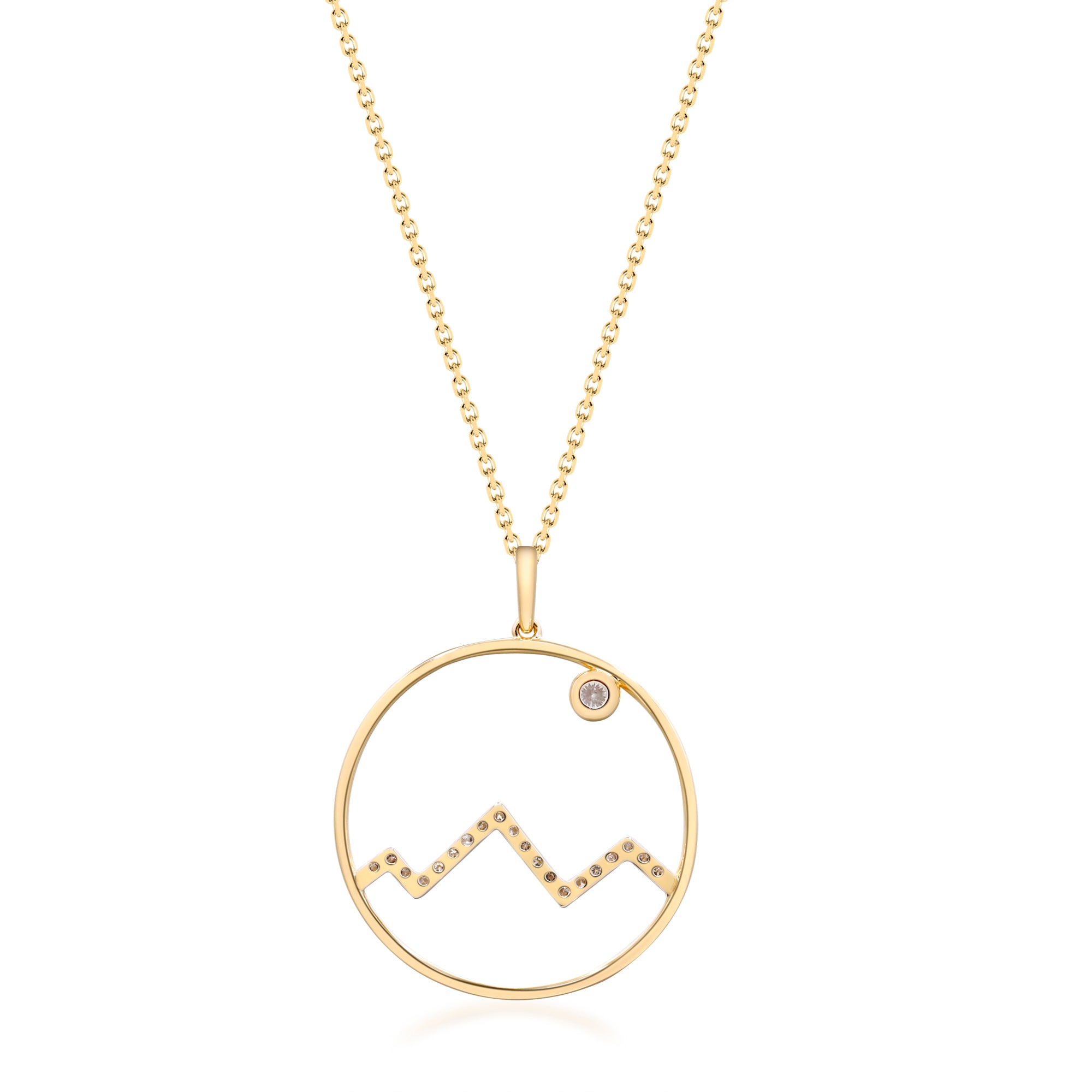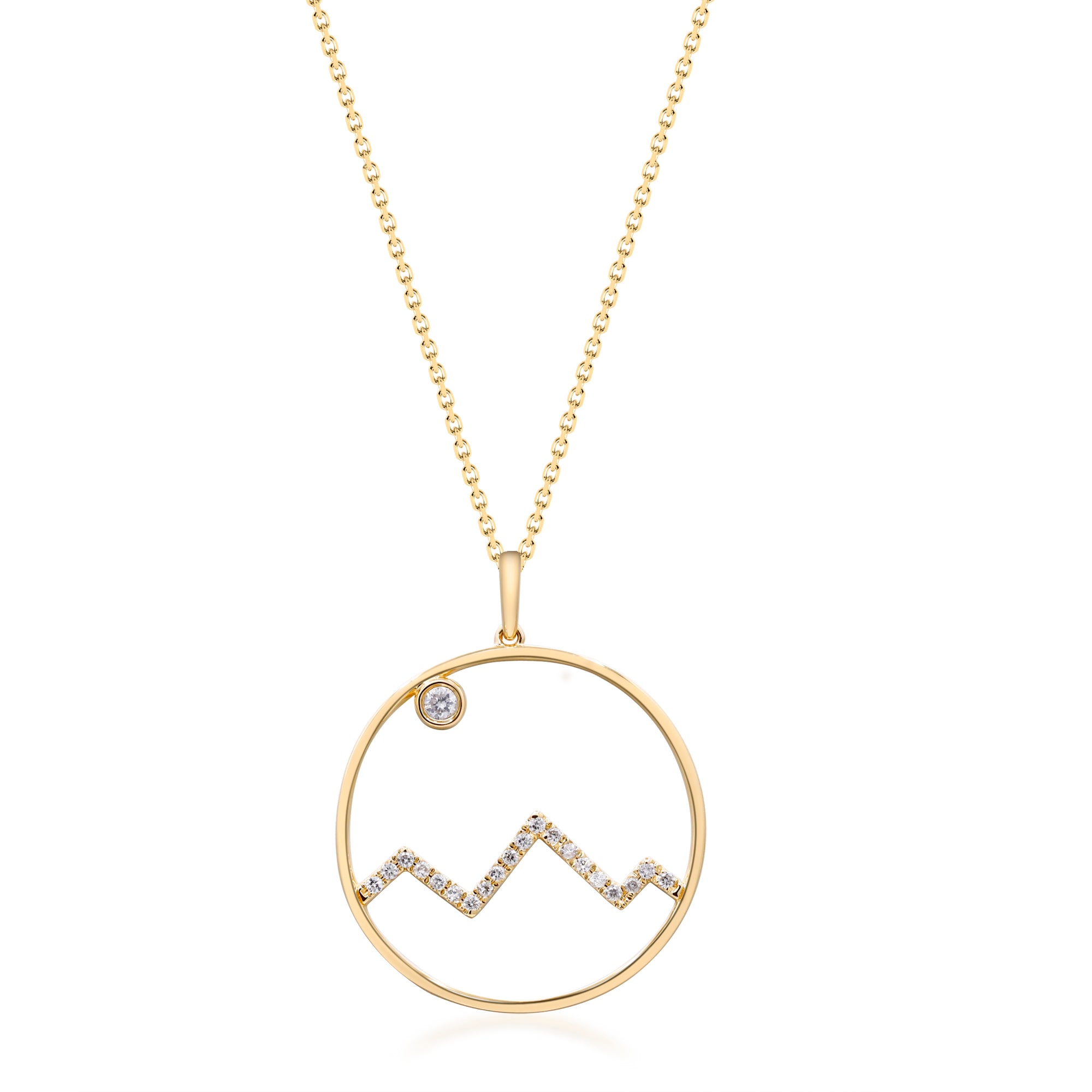 Decorate yourself in elegance with this Pendant is crafted from 14-karat Yellow Gold by Gin & Grace Pendant. This Pendant is made up of Round-Cut Prong setting White Diamond (21 Pcs) 0.10 Carat. This Pendant is weight 1.66 grams. The gorgeous Pendant hangs from an 18-inch wheat chain. This delicate Pendant is polished to a high finish shine.