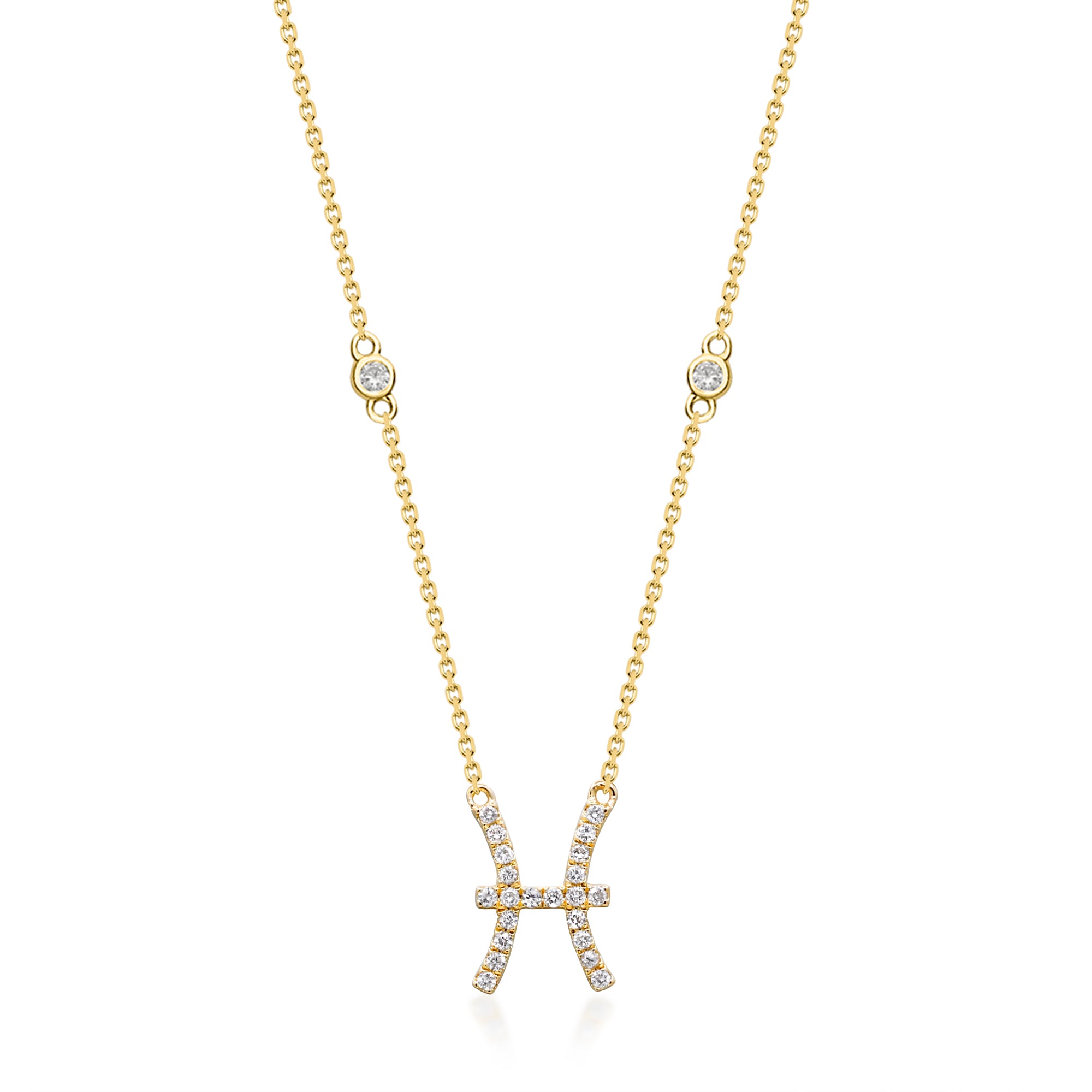 Pisces 14K Yellow Gold Round-Cut White Diamond Pendant