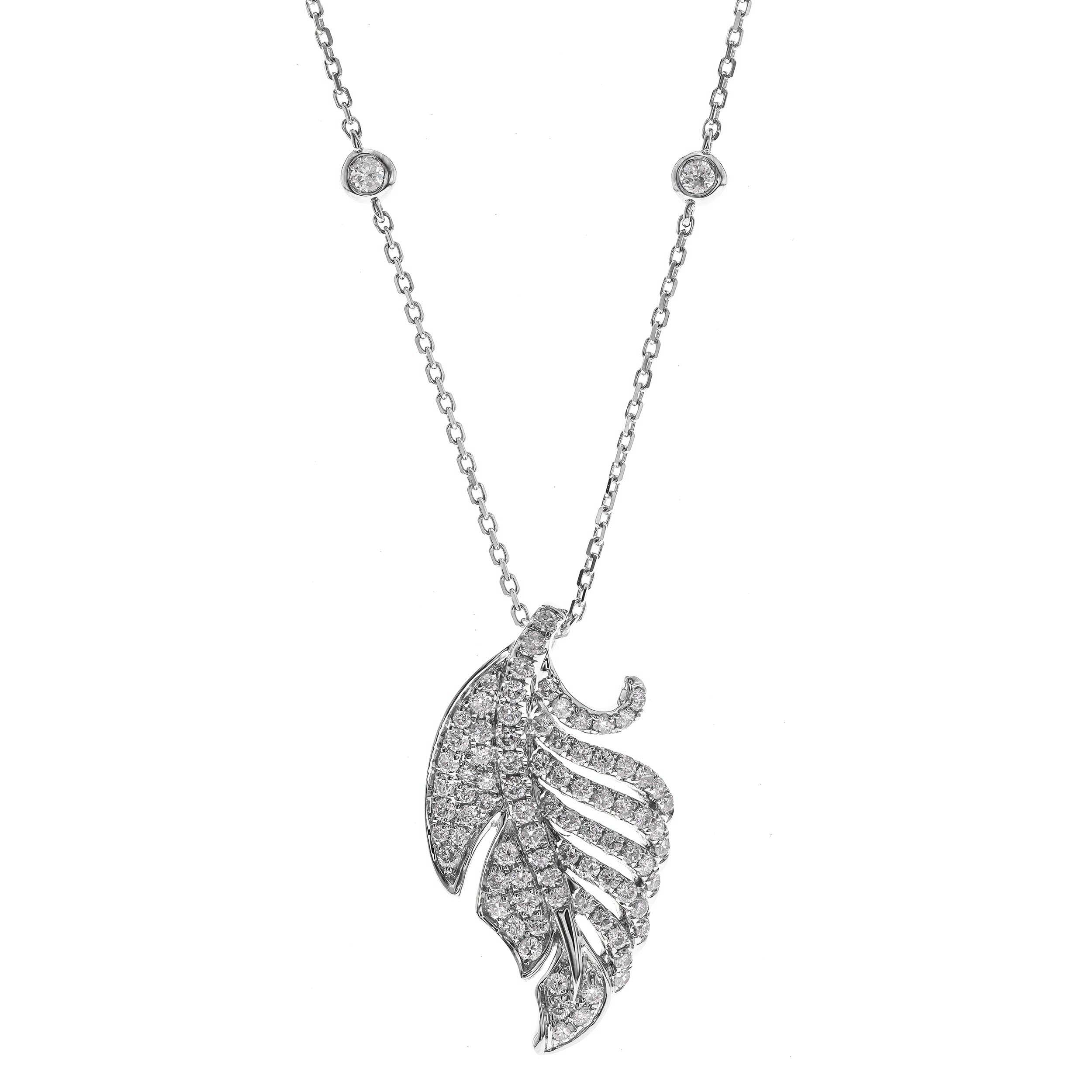 Decorate yourself in elegance with this Pendant is crafted from 14-karat White Gold by Gin & Grace Pendant. This Pendant is made up of Round-Cut Prong setting White Diamond (85 Pcs) 0.69 Carat. This Pendant is weight 3.75 grams. The gorgeous Pendant hangs from an 18-inch wheat chain. This delicate Pendant is polished to a high finish shine.