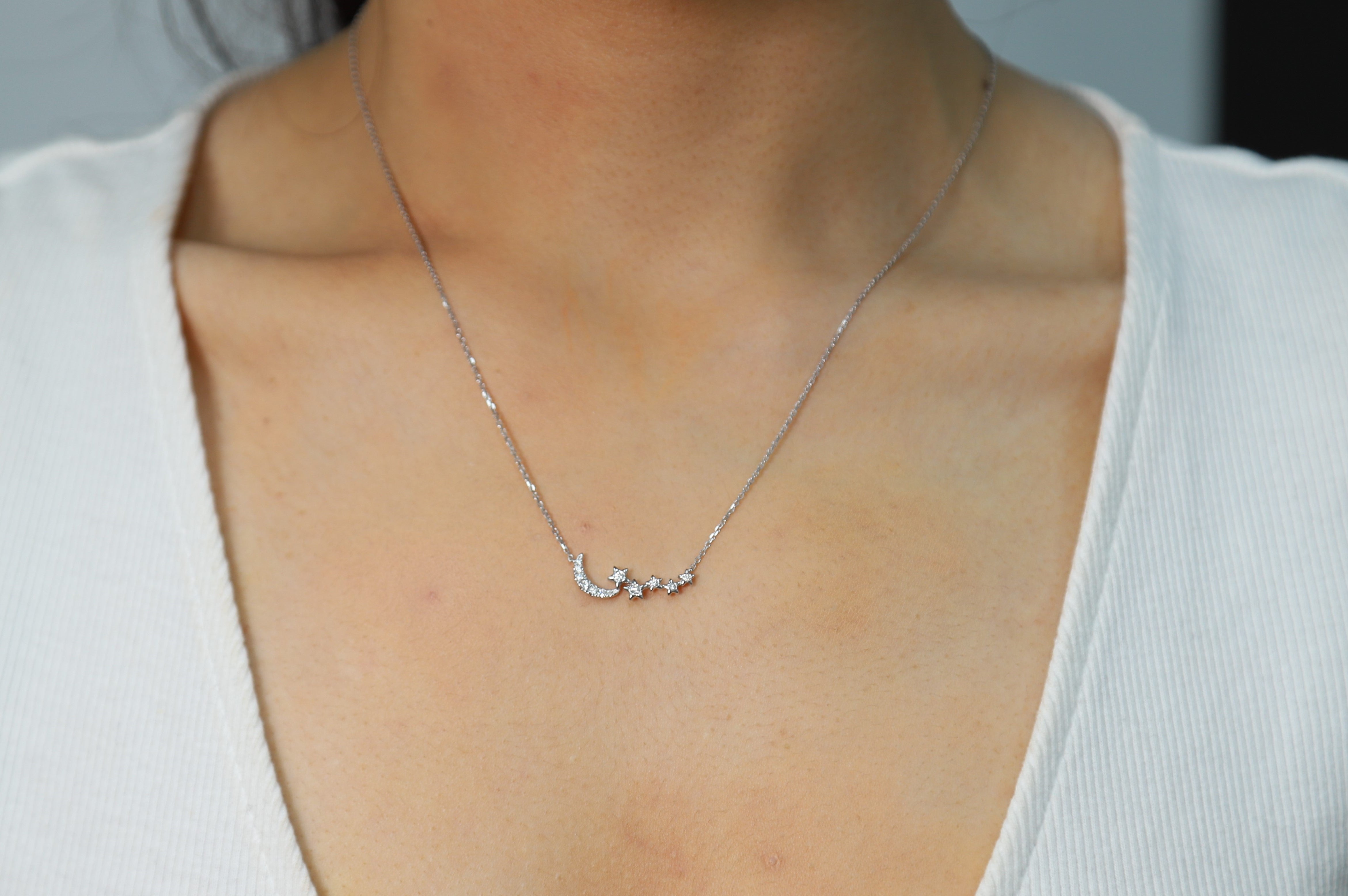 Stunning, timeless and classy eternity Unique Necklace. Decorate yourself in luxury with this Gin & Grace Necklace. The 14K White Gold jewelry boasts Round-Cut Prong Setting Natural White Diamond (12 pcs) 0.15 Carat accent stones for a lovely design. This Necklace is weight 2.37 grams. Crafted with 14K White Gold, this delicate Necklace is polished to a high finish shine.