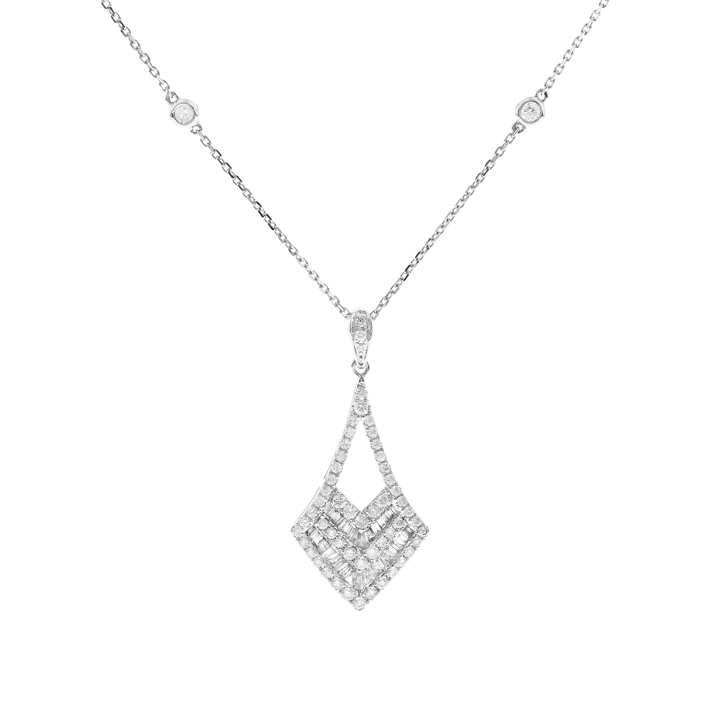 Decorate yourself in elegance with this Pendant is crafted from 14-karat White Gold by Gin & Grace. This Pendant is baguette-cut White Diamond (26 Pcs) 0.25 Carat and Round-cut White Diamond (56 Pcs) 0.53 Carat. This Pendant is weight 3.37 grams. This delicate Pendant is polished to a high finish shine.