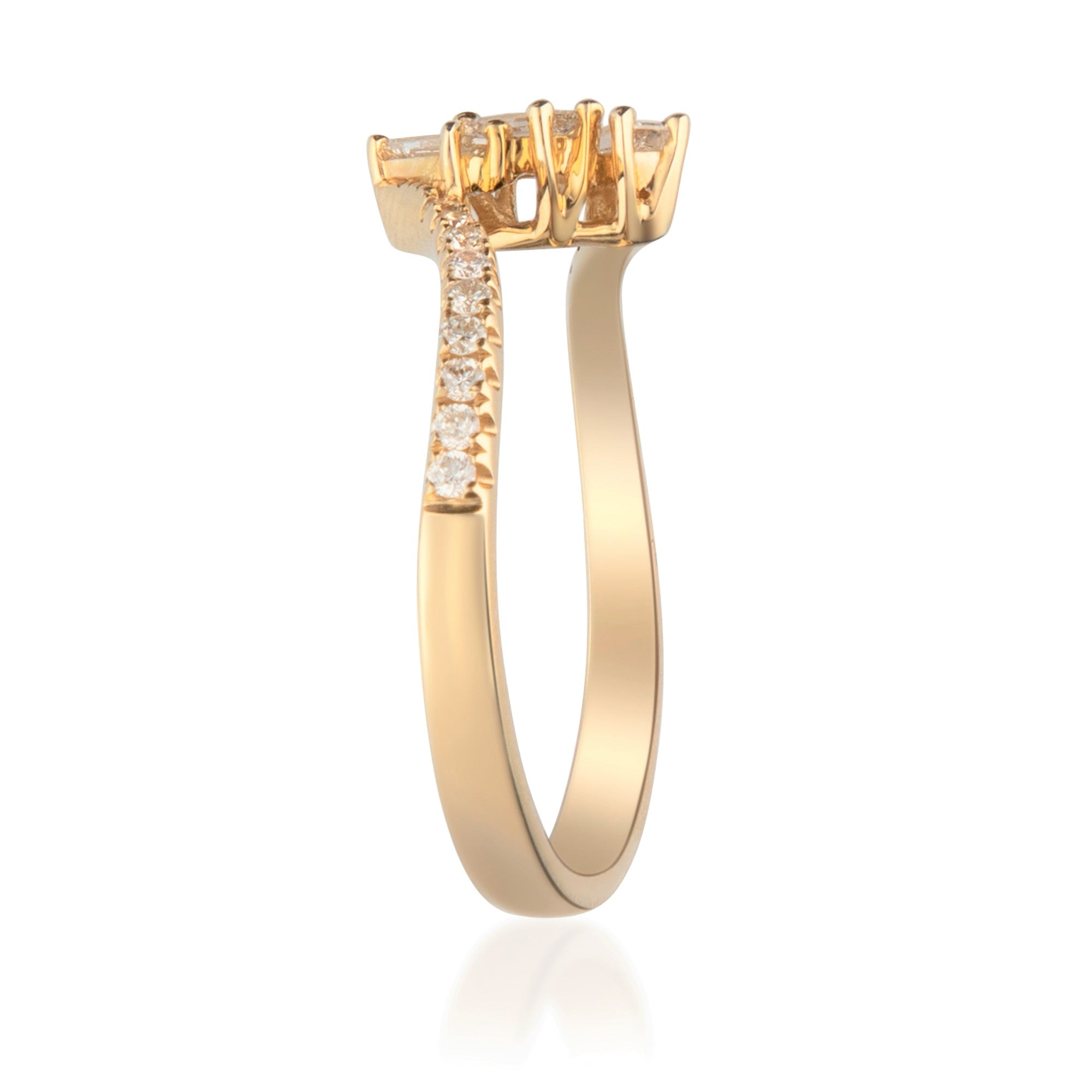 Decorate yourself in elegance with this Ring is crafted from 14-karat Yellow Gold by Gin & Grace. This Ring is made up of Baguette-cut Pond-Setting White Diamond (3 Pcs) 0.16 Carat and Round-cut Pond-Setting White Diamond (18 Pcs) 0.16 Carat. This Ring is weight 2.16 grams. This delicate Ring is polished to a high finish shine.