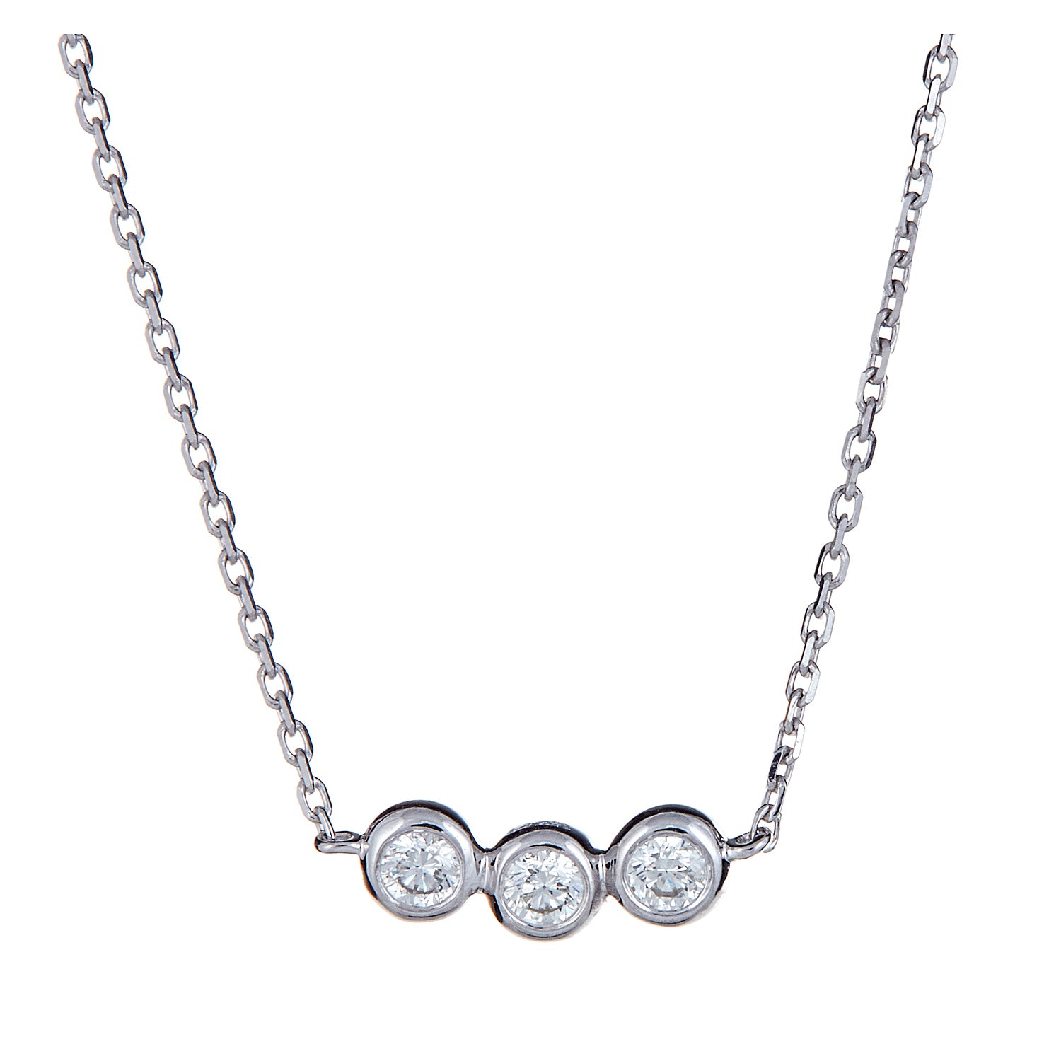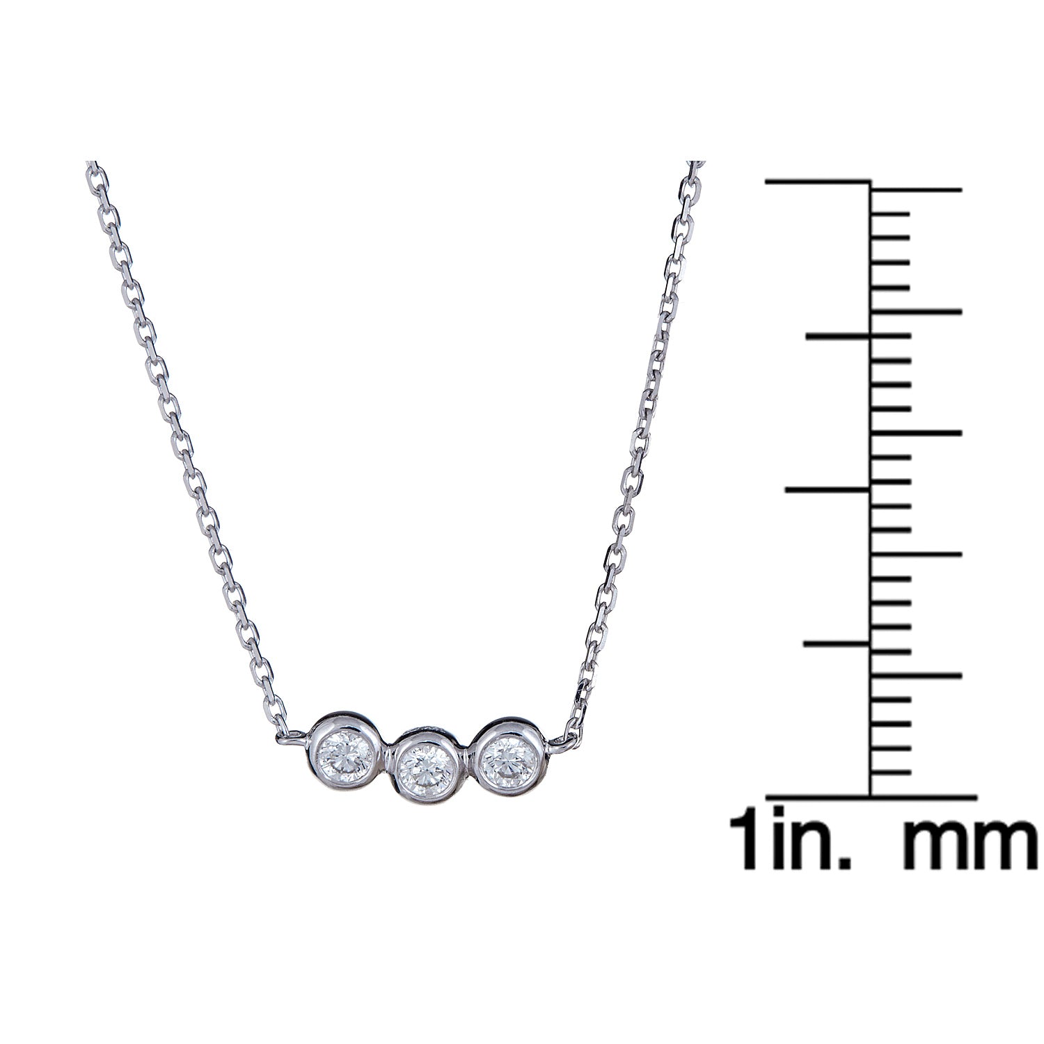 Decorate yourself in elegance with this Necklace is crafted from 10-karat White Gold by Gin & Grace. This Necklace is made up of Round-cut White Diamond (3 Pcs) 0.15 Carat. This Necklace is weight 1.74 Grams. This delicate Necklace is polished to a high finish shine.