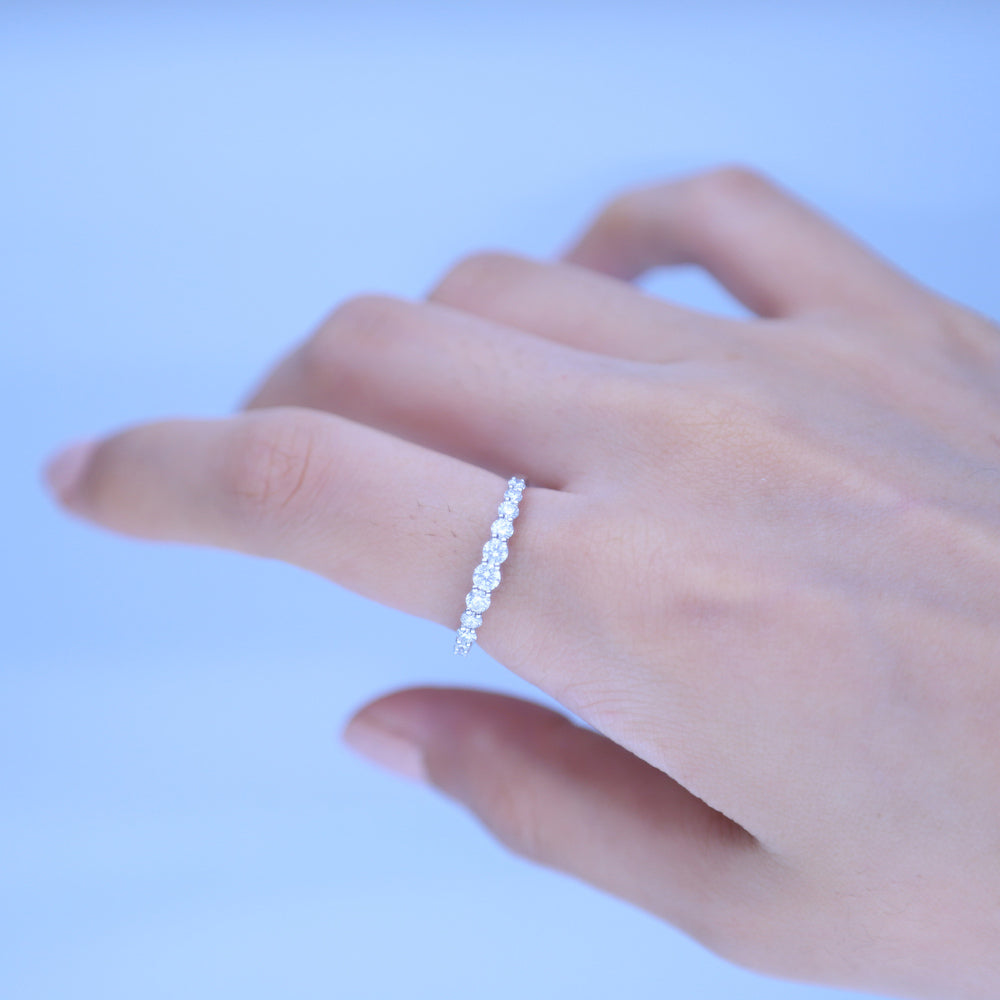 Stunning, timeless and classy eternity Unique Ring. Decorate yourself in luxury with this Gin & Grace Ring. The 14K White Gold jewelry boasts Round-Cut Prong Setting Natural White Diamond (11 pcs) 0.58 Carat accent stones for a lovely design. This Ring is weight 2.08 grams. Crafted with 14K White Gold, this delicate Ring is polished to a high finish shine.