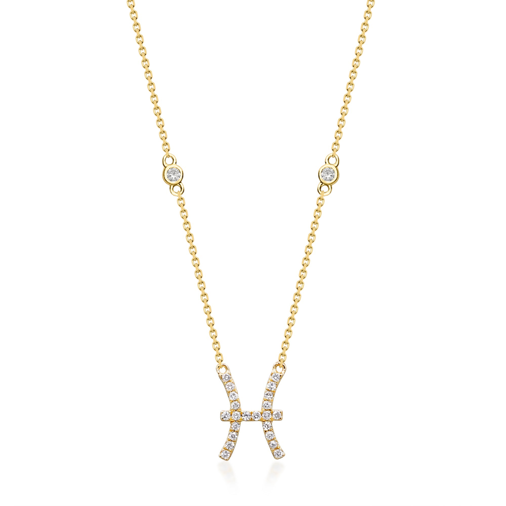 Pisces 14K Yellow Gold Round-Cut White Diamond Pendant