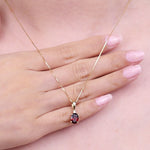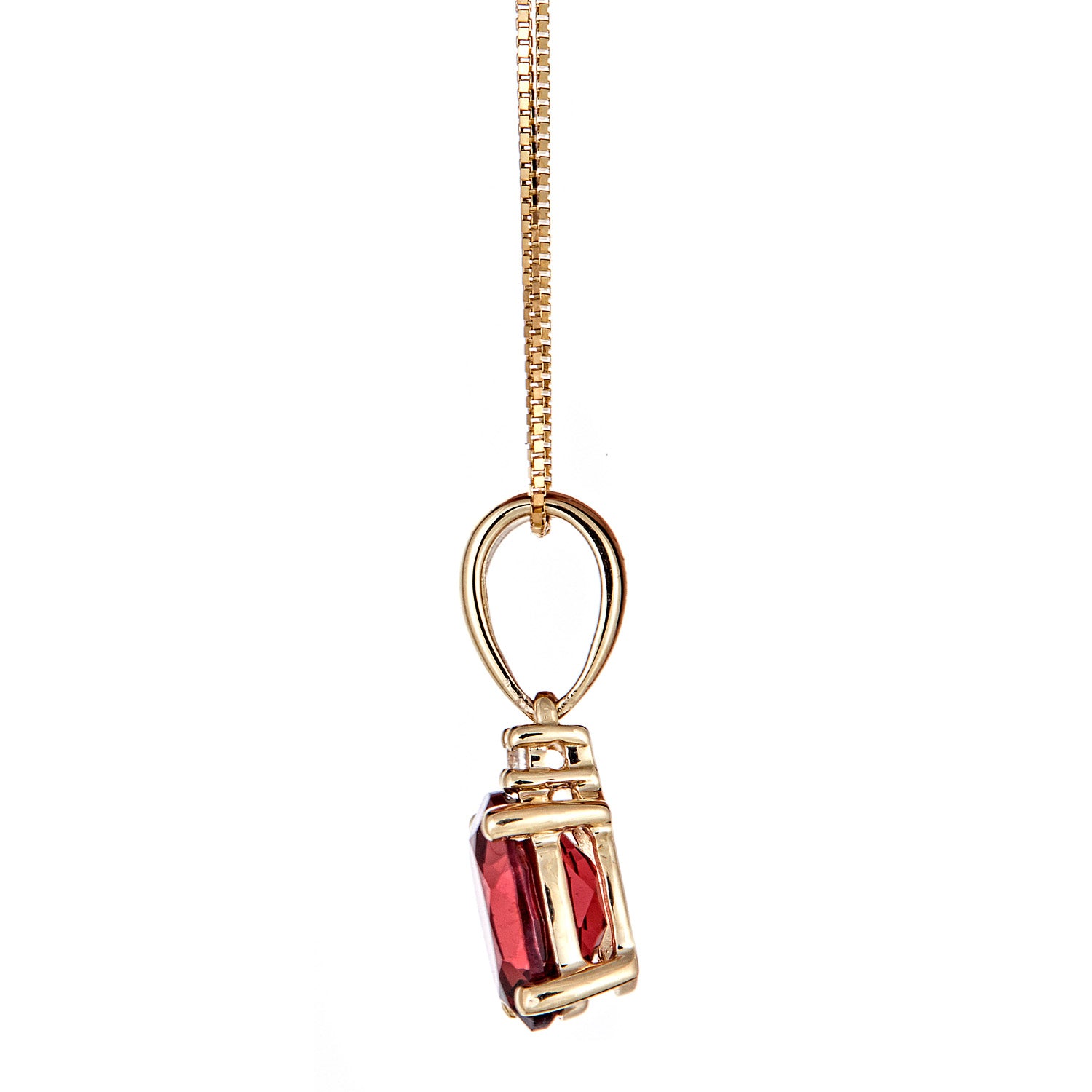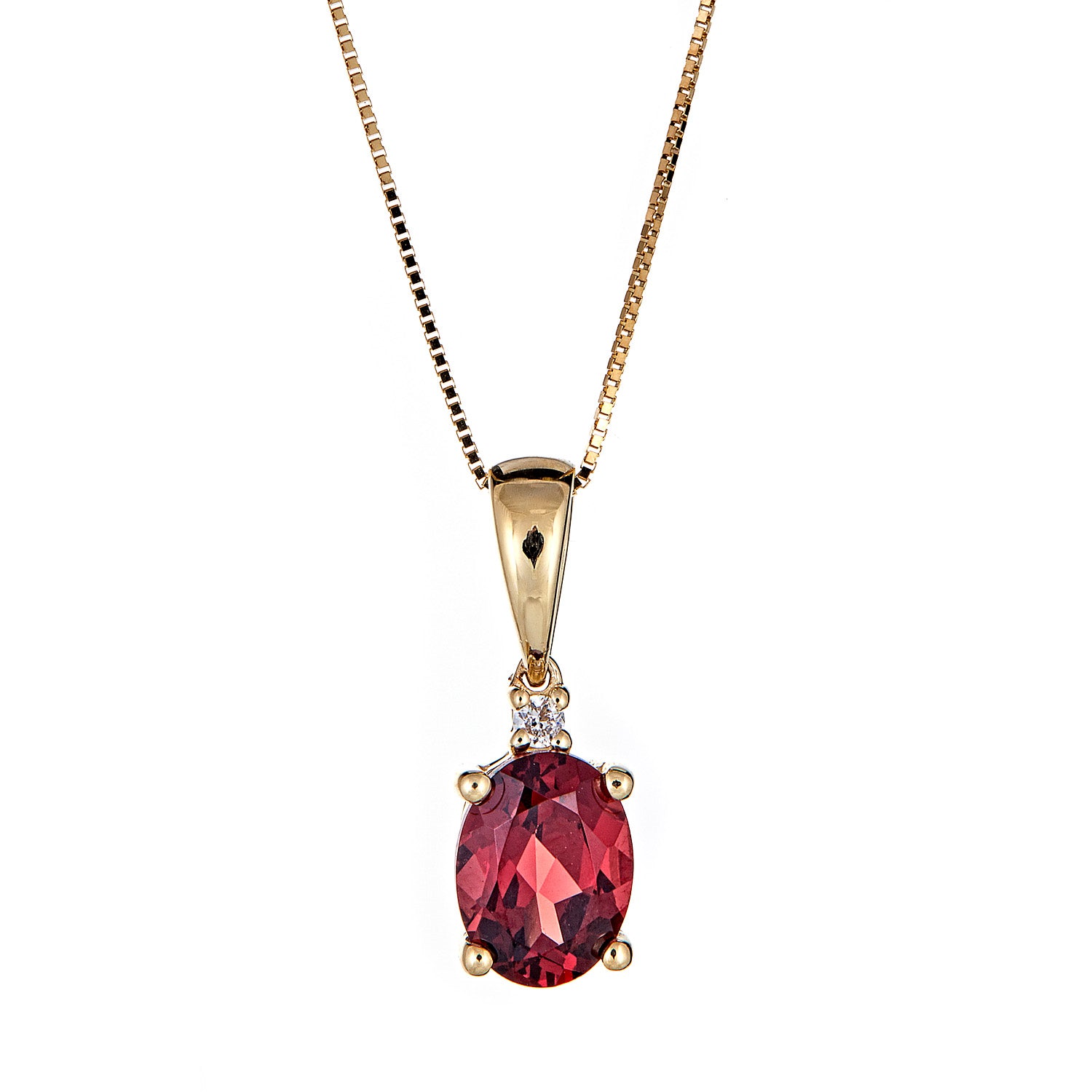 Stunning, timeless and classy eternity Unique Pendant. Decorate yourself in luxury with this Gin & Grace Pendant. The 10K Yellow Gold jewelry boasts Oval-Cut Prong Setting Natural Garnet (1 pc) 1.20 Carat, along with Natural Round cut white Diamond (1 Pcs) 0.02 Carat, accent stones for a lovely design. This Pendant is weight 0.70 grams. Crafted with 10K Yellow Gold, this delicate Pendant is polished to a high finish shine.