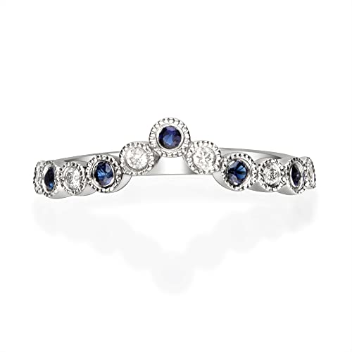 Stunning, timeless and classy eternity Engagement ring. Decorate yourself in luxury with this Gin & Grace ring. This ring is made up of Round-Cut Prong Setting Genuine Ceylon Blue Sapphire (3 pcs) 0.14 Carat and Round-Cut Prong Setting Diamond (4 pcs) 0.05 Carat accent stones for a lovely design. This ring is weight 2.07 grams. The ring is crafted of shining 14-karat White Gold and is completed by a highly polished finish.