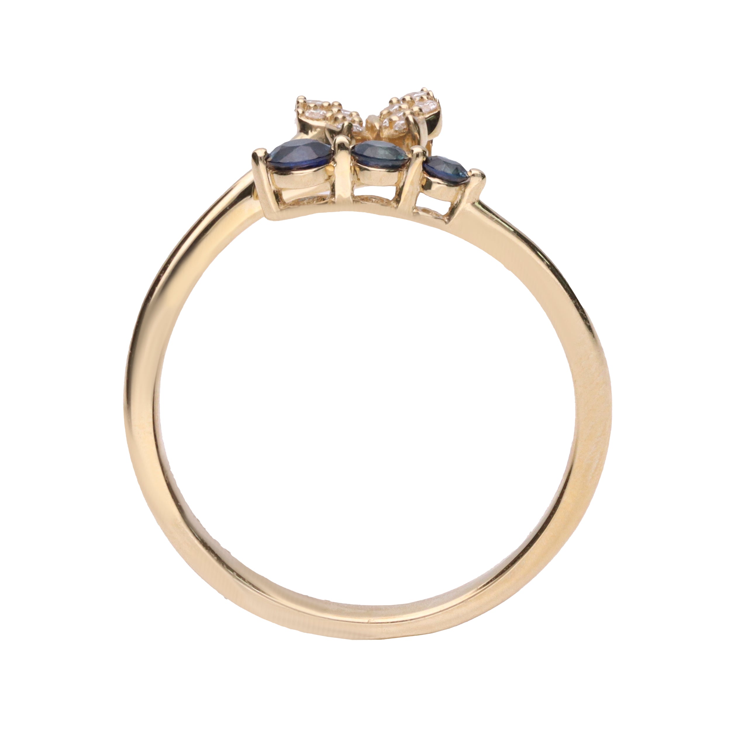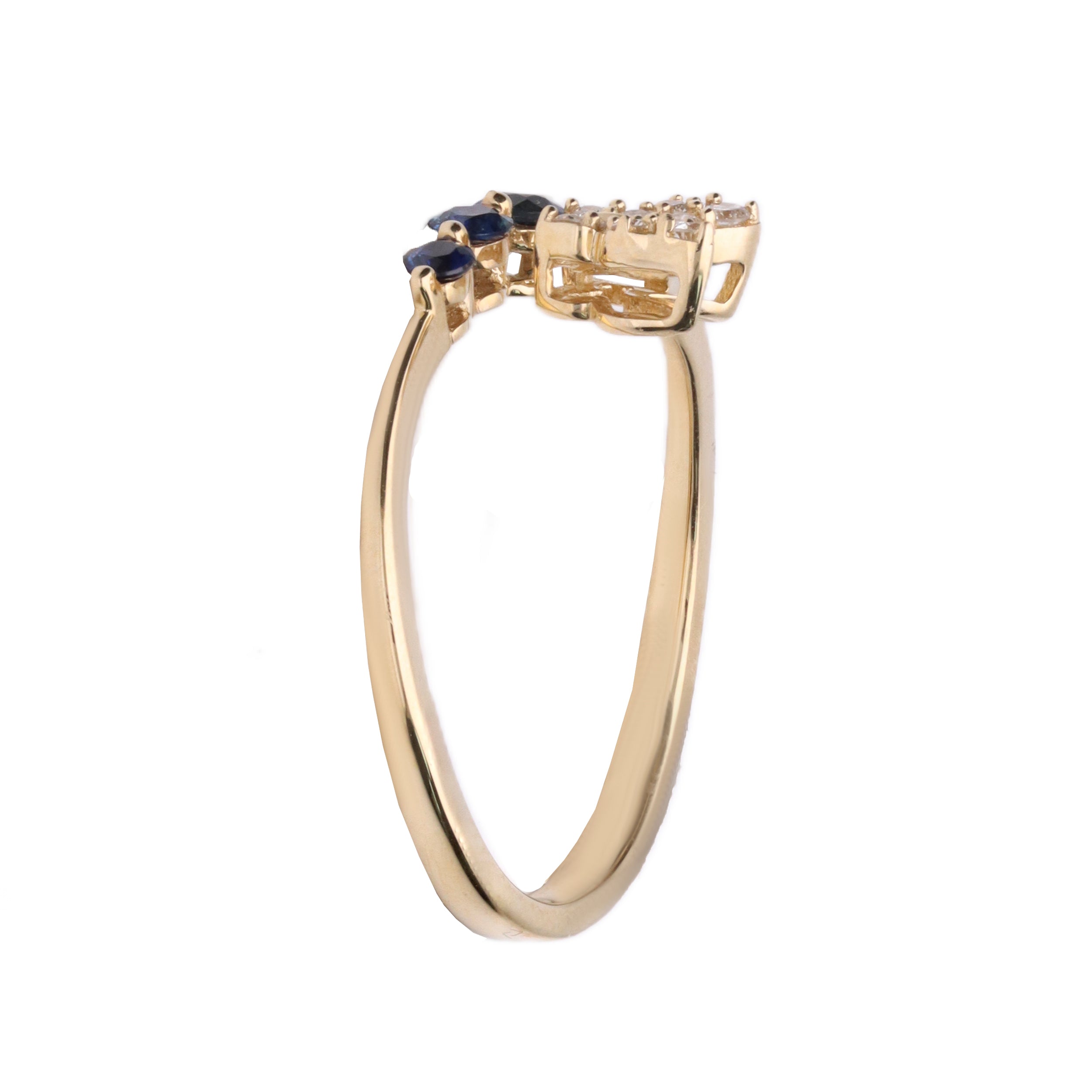 Stunning, timeless and classy eternity Unique Ring. Decorate yourself in luxury with this Gin & Grace Ring. This Ring is made up of Round-Cut Prong Setting Genuine Blue Sapphire (3 pc) 0.22 Carat and Round-Cut Prong Setting Natural Diamond (10 pcs) 0.09 Carat accent stones for a lovely design. This Ring is weight 1.99 grams. The Ring is crafted of shining 14K Yellow Gold and is completed by a highly polished finish.