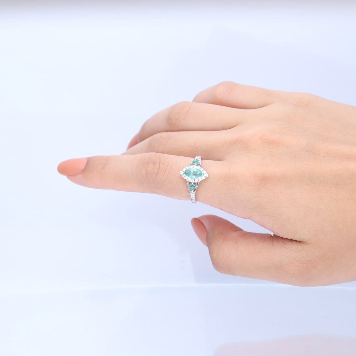 Enchanting Splendor: Annika 14K White Gold Marquise-Cut Natural Zambian Emerald Ring
