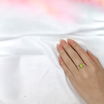 Decorate yourself in elegance with this Ring is crafted from 14-karat Yellow Gold by Gin & Grace. This Ring is made up of 7.0 mm Cushion-Cut Manchurian Peridot (1 pcs) 1.56 carat and Round-cut White Diamond (2 Pcs) 0.05 Carat, Baguette-cut White Diamond ( 2 pcs) 0.09 carat. This Ring is weight 1.56 grams. This delicate Ring is polished to a high finish shine.