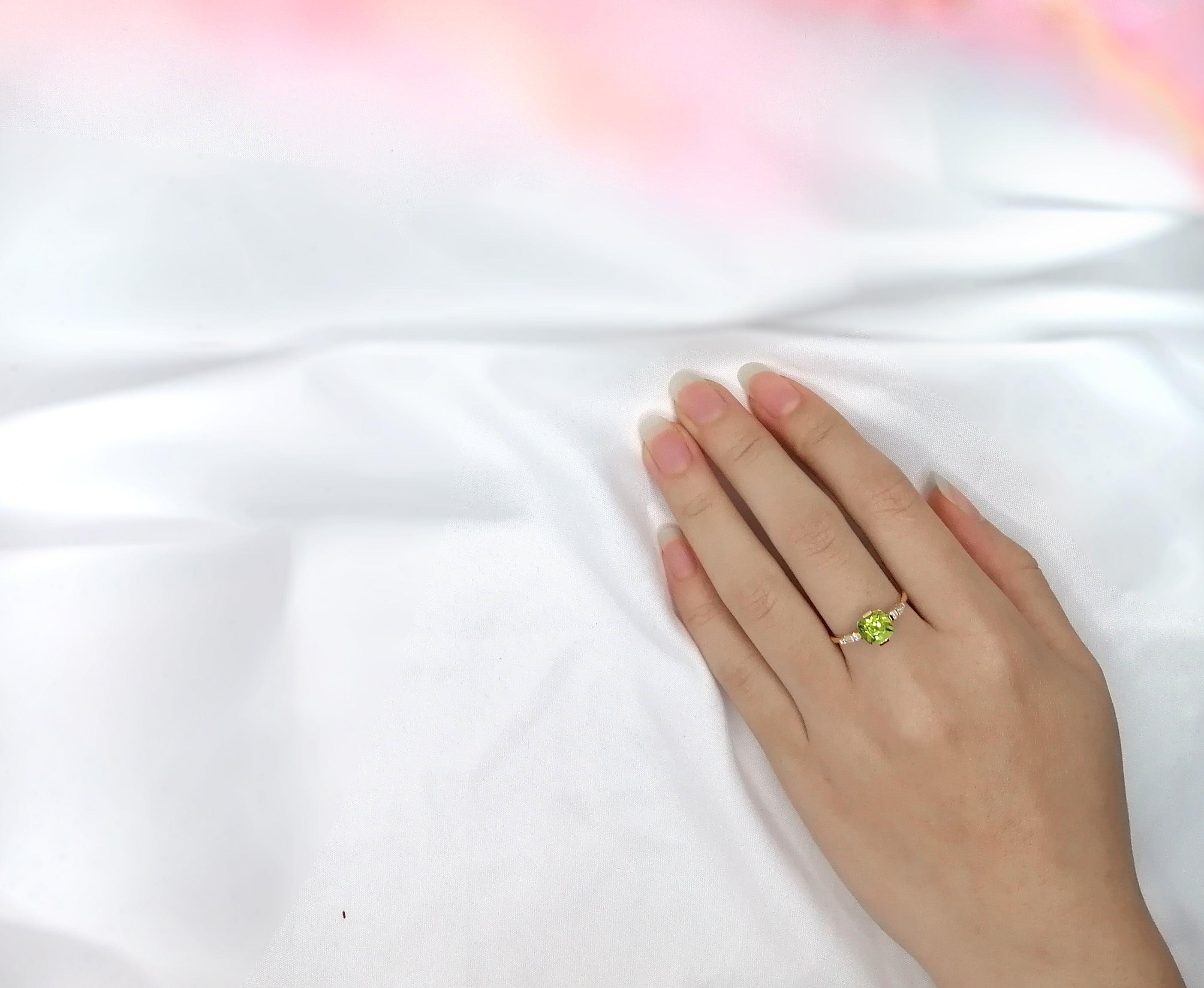Brinley 14K Yellow Gold Cushion-Cut Manchurian Peridot Ring