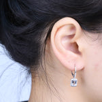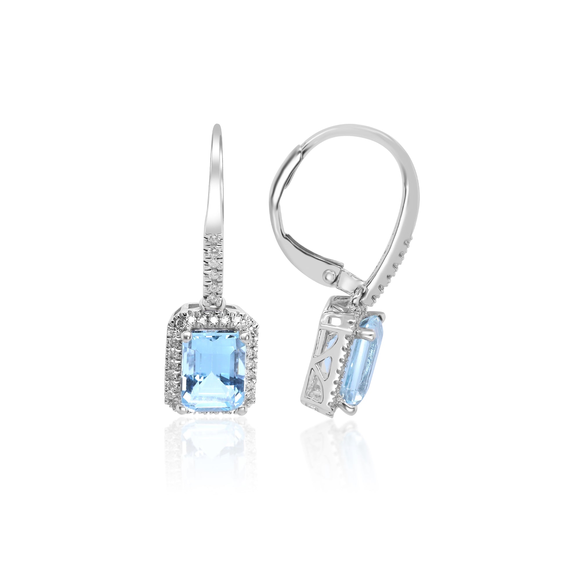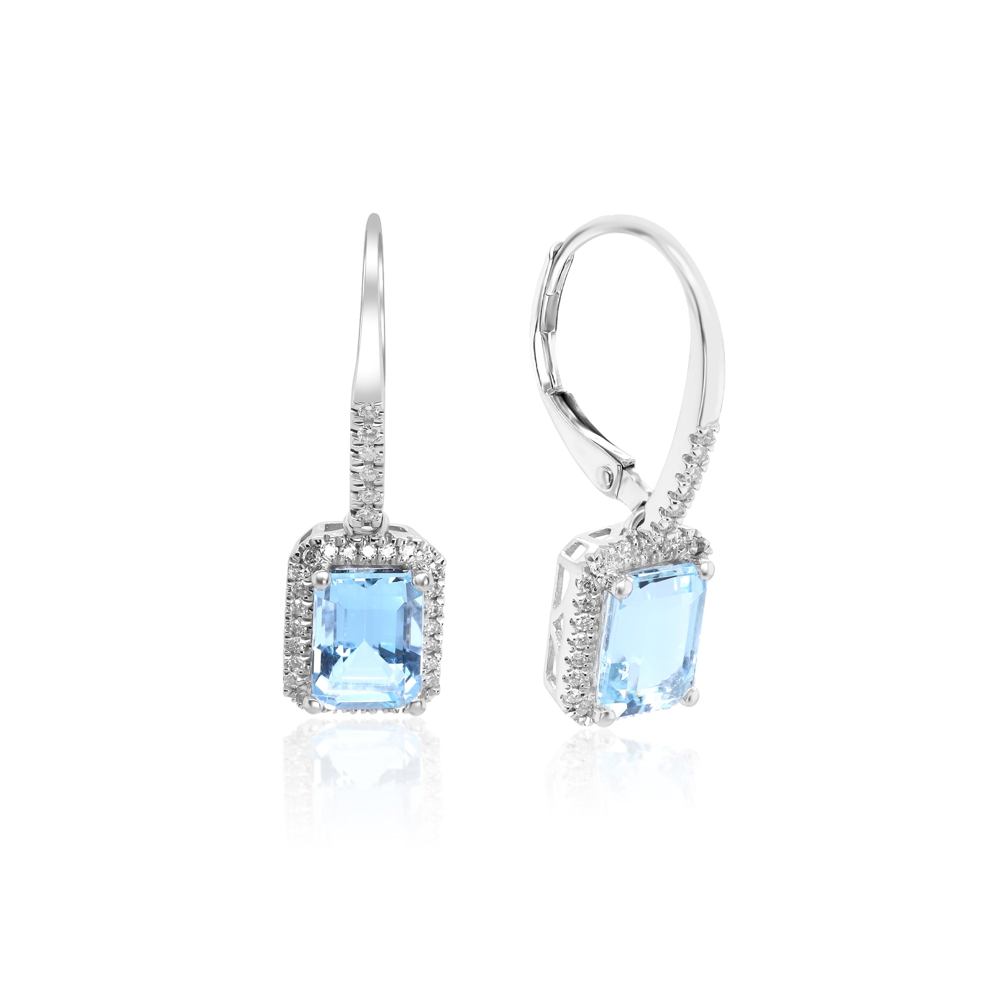 Decorate yourself in elegance with this Earring is crafted from 14-karat White Gold by Gin & Grace. This Earring is made up of Emerald-Cut Brazilian Aquamarine (2 pcs) 1.93 carat and Round-cut White Diamond (68 pcs) 0.20 Carat. This Earring is weight 2.33 grams. This delicate Earring is polished to a high finish shine.