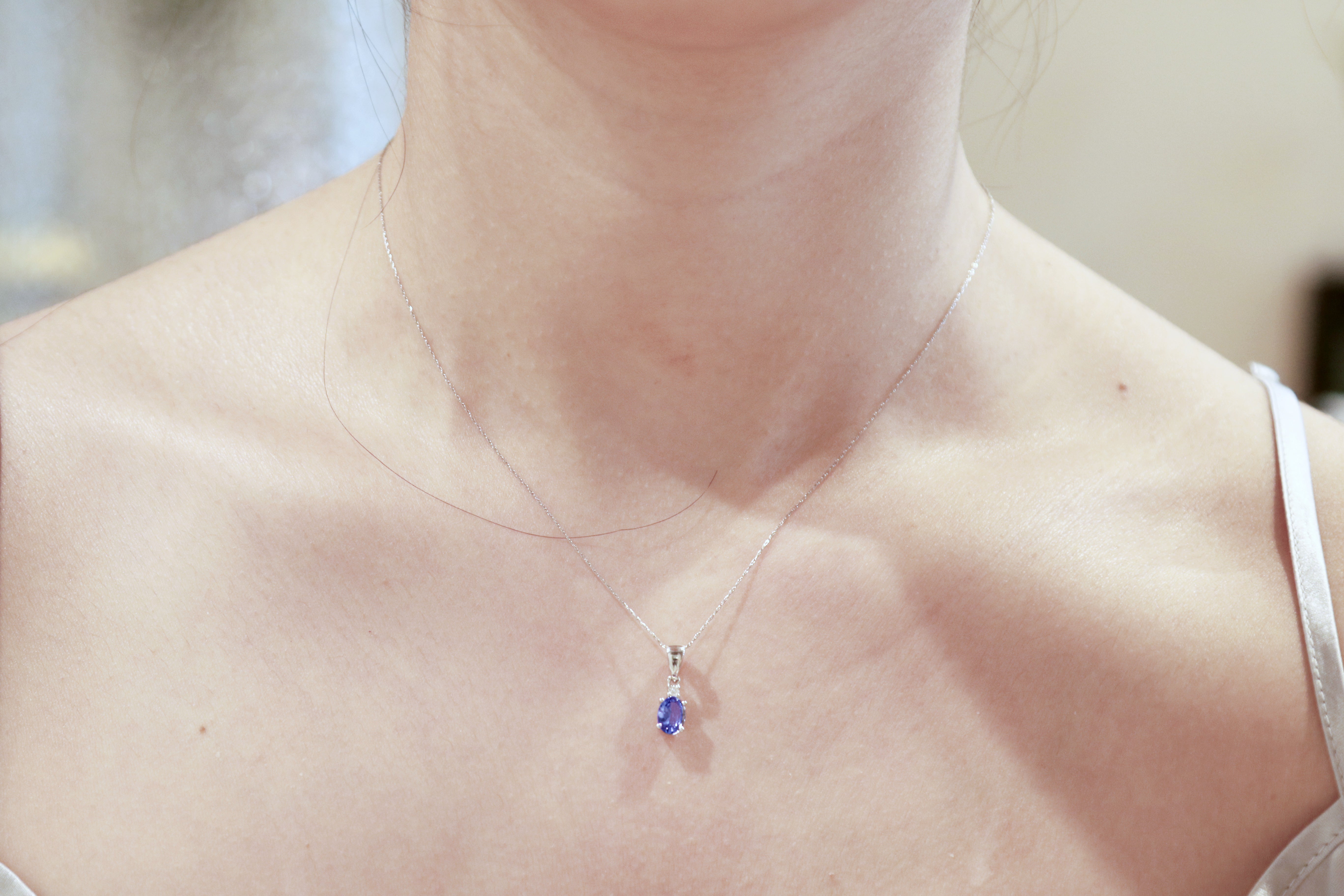 Stunning, timeless and classy eternity Unique Pendant. Decorate yourself in luxury with this Gin & Grace Pendant. The 14k White Gold jewelry boasts Oval-Cut Prong Setting Genuine Tanzanian Tanzanite (1 pcs) 0.81 Carat, along with Natural Round cut white Diamond (1 Pcs) 0.03 Carat, accent stones for a lovely design. This Pendant is weight 0.94 grams. Crafted with 14k White Gold, this delicate Pendant is polished to a high finish shine..
