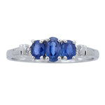 Decorate yourself in elegance with this Ring is crafted from 10-karat White Gold by Gin & Grace Ring. This Ring is made up of 5x3 mm Oval-Cut Ceylon Blue Sapphire (1 Pcs) 0.28 Carat, 4x3 mm Oval-cut Ceylon Blue Sapphire (2 Pcs) 0.41 Carat and Round-cut White Diamond (2 Pcs) 0.02 Carat. This Ring is weight 1.68 grams. This delicate Ring is polished to a high finish shine.