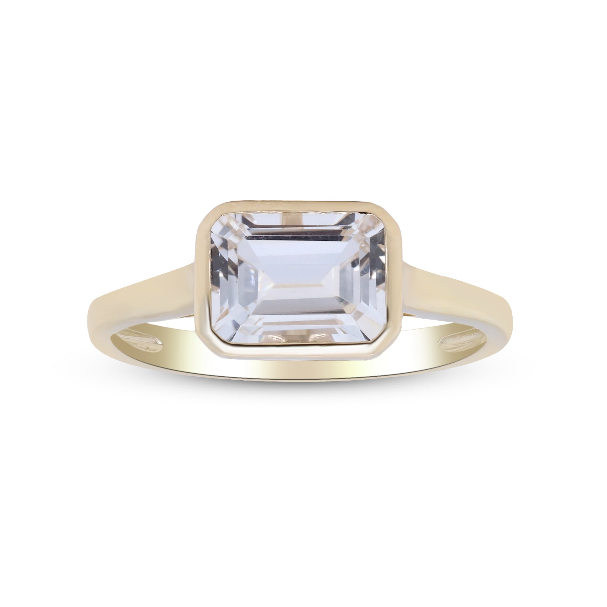 Decorate yourself in elegance with this Ring is crafted from 10-karat Yellow Gold by Gin & Grace. This Ring is made up of Emerald-cut White Topaz (1 Pcs) 1.95 carat. This Ring is weight 2.00 grams. This delicate Ring is polished to a high finish shine.