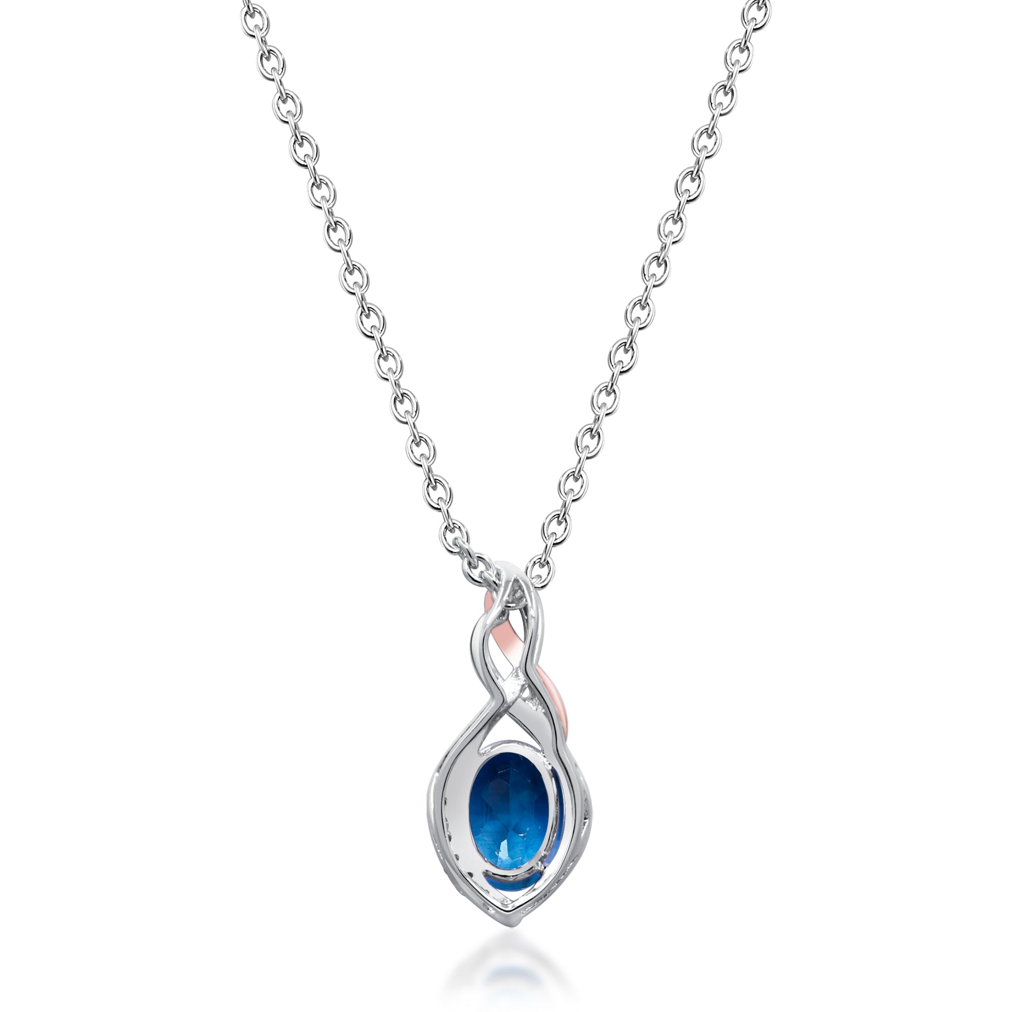 Inspired by the graceful curves of a Stimpson’s whelk sea shell, this exquisite pendant is crafted from 925 sterling silver and luxuriously coated with 10K rose gold. At its center sits a sparkling oval-cut London Blue Topaz of 1 carat, radiating deep, captivating blue tones reminiscent of the ocean. Natural white diamonds accent the design, adding subtle brilliance and sophistication. Perfect for lovers of nature-inspired jewelry, this pendant combines organic beauty with refined craftsmanship, making it an elegant addition to any collection or a thoughtful, one-of-a-kind gift.