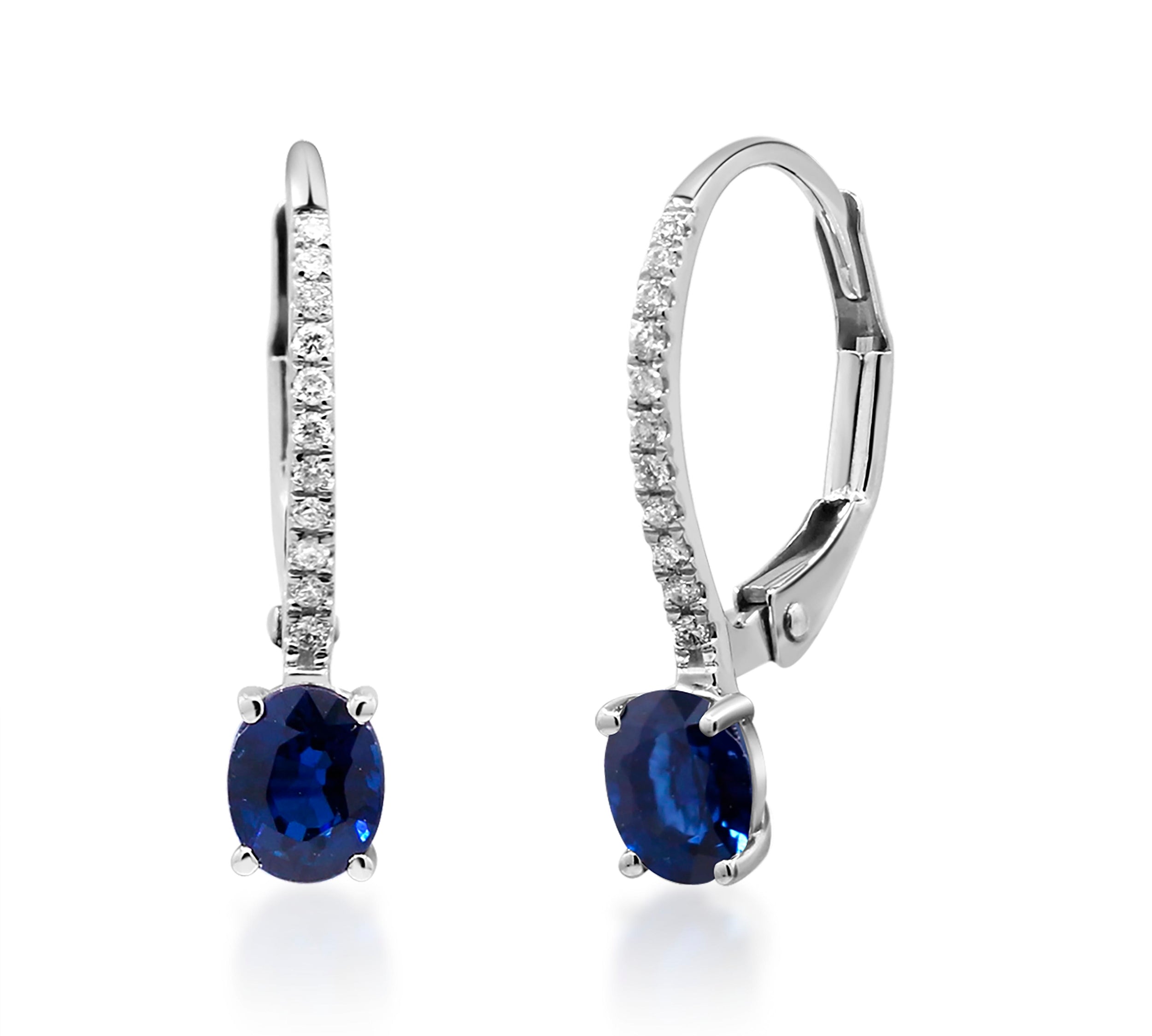 Elena 14K White Gold Oval-Cut Blue Sapphire Earrings