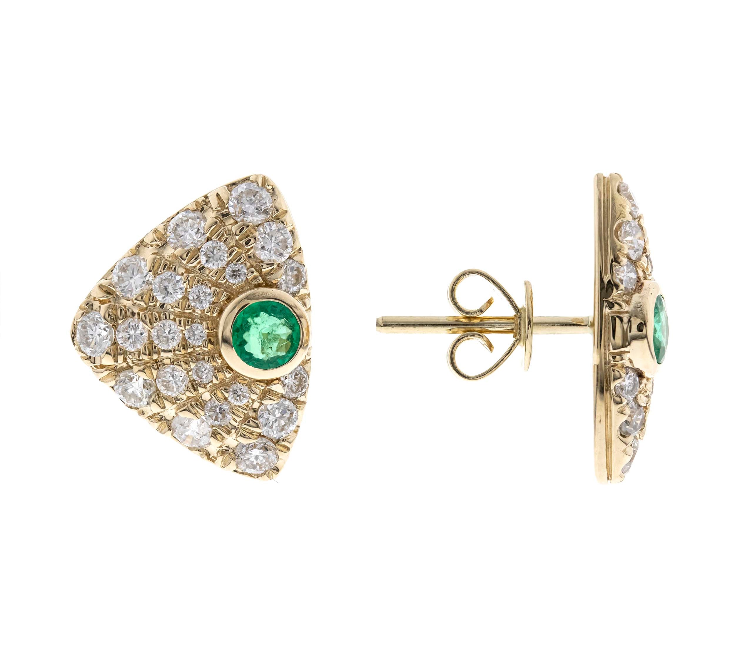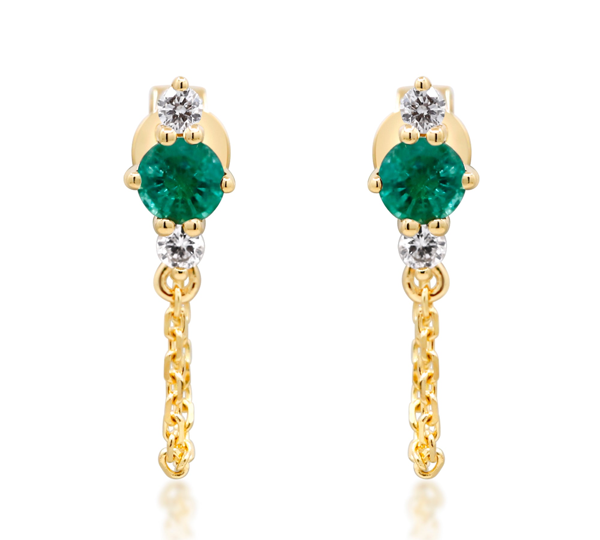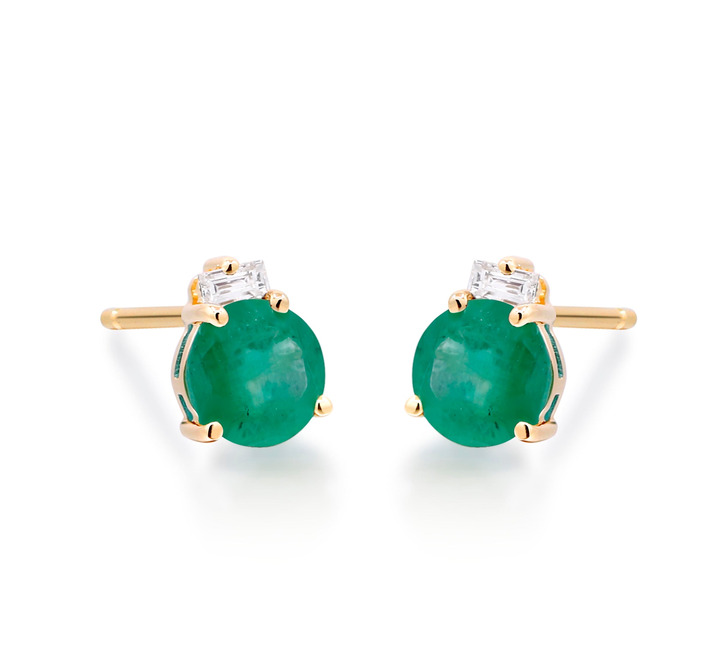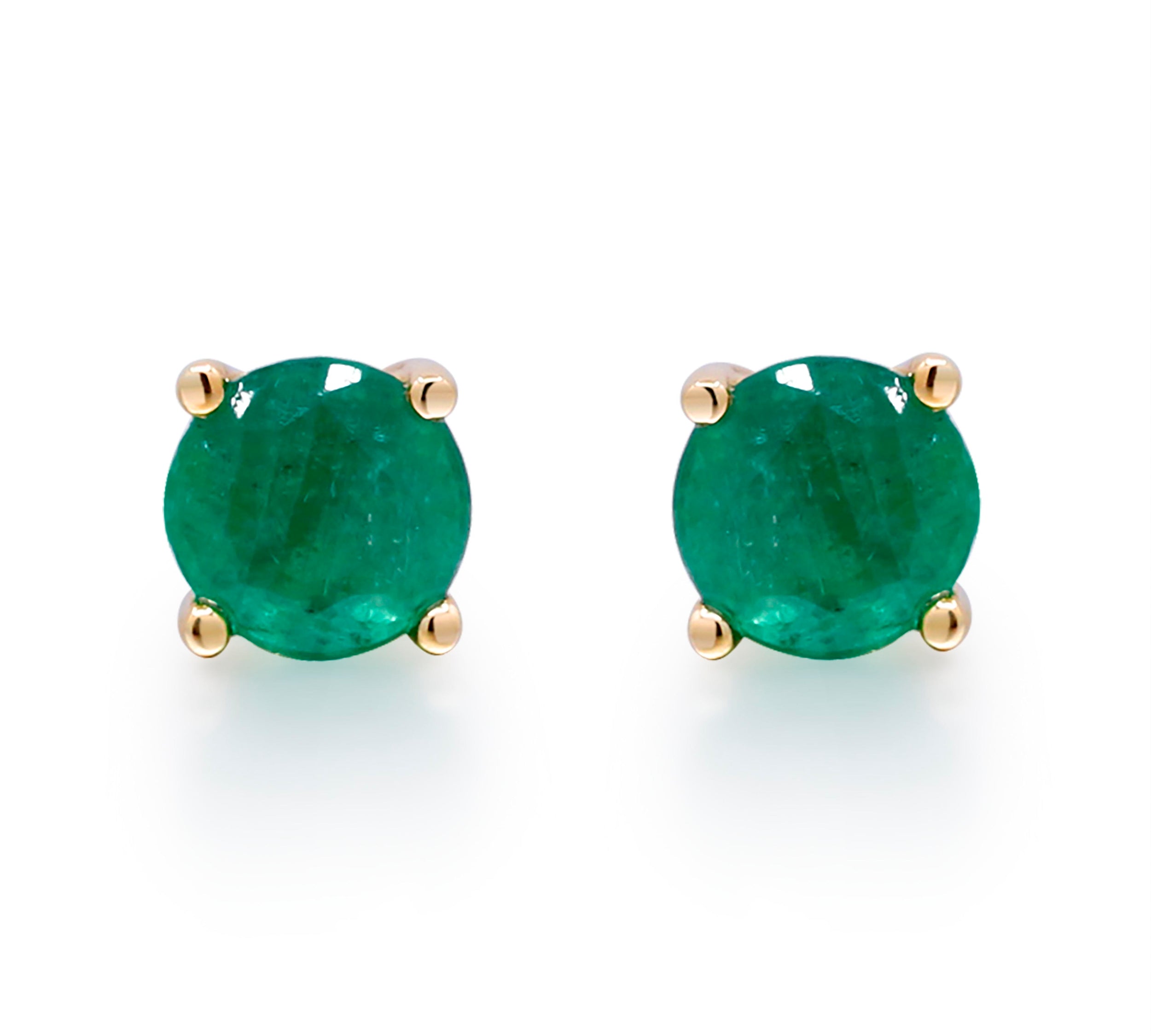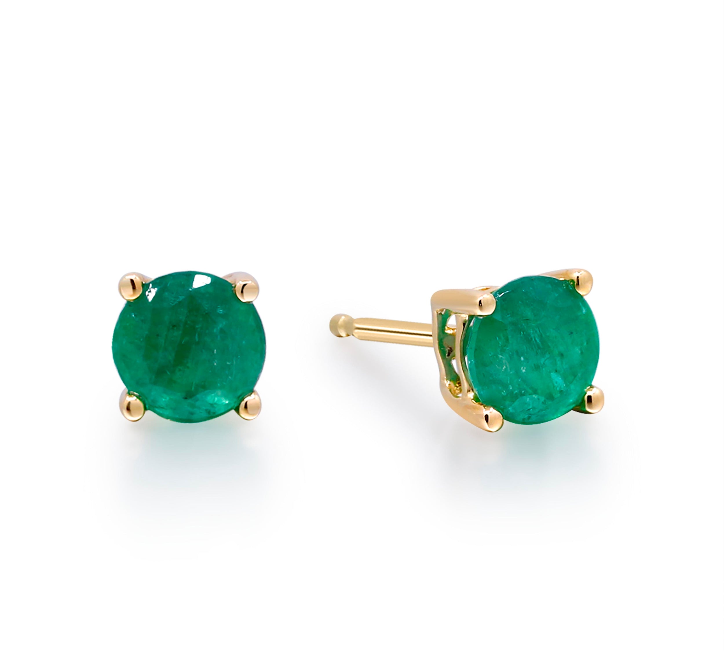 Emersyn 14K Yellow Gold Round-Cut Emerald Earrings