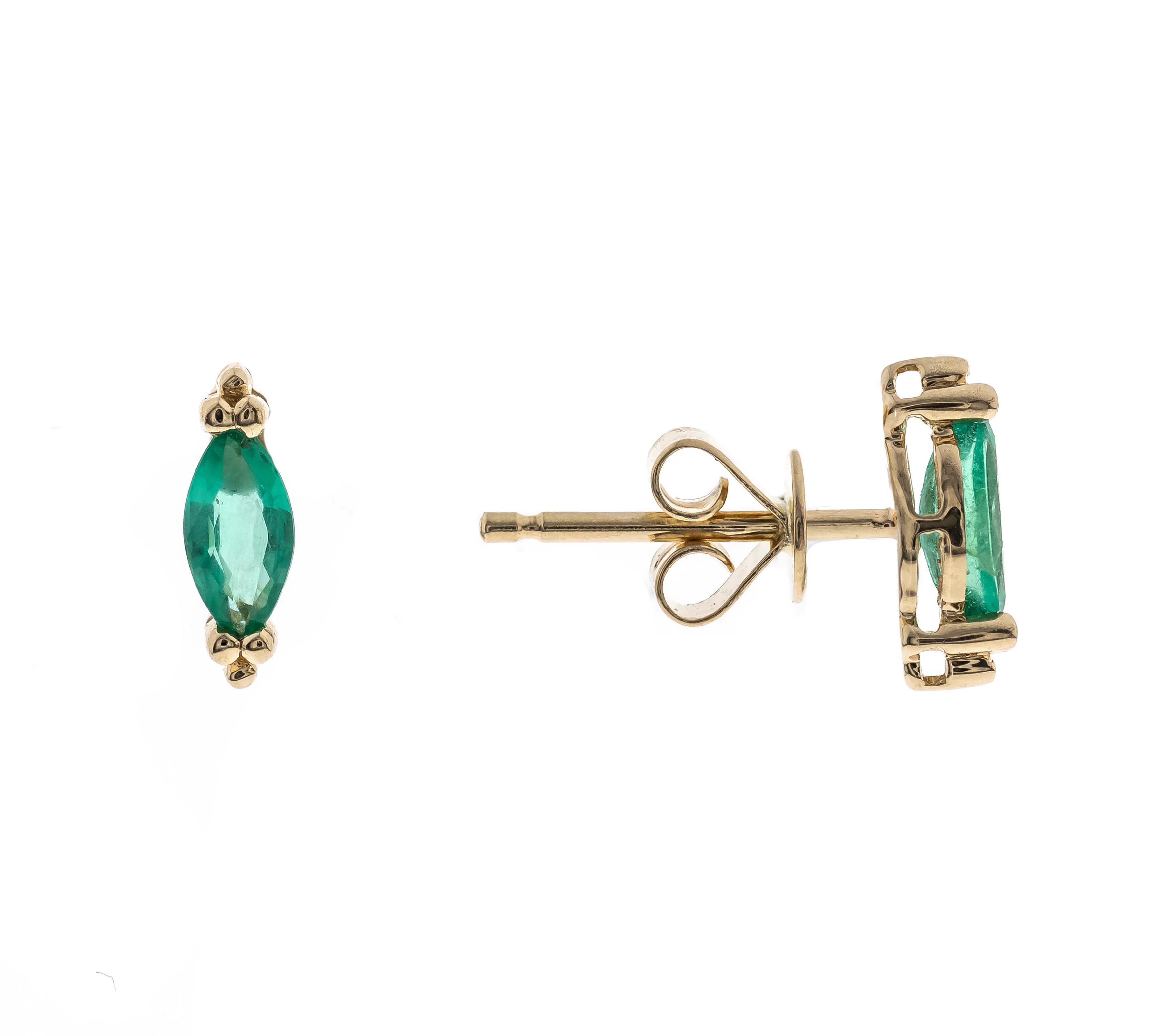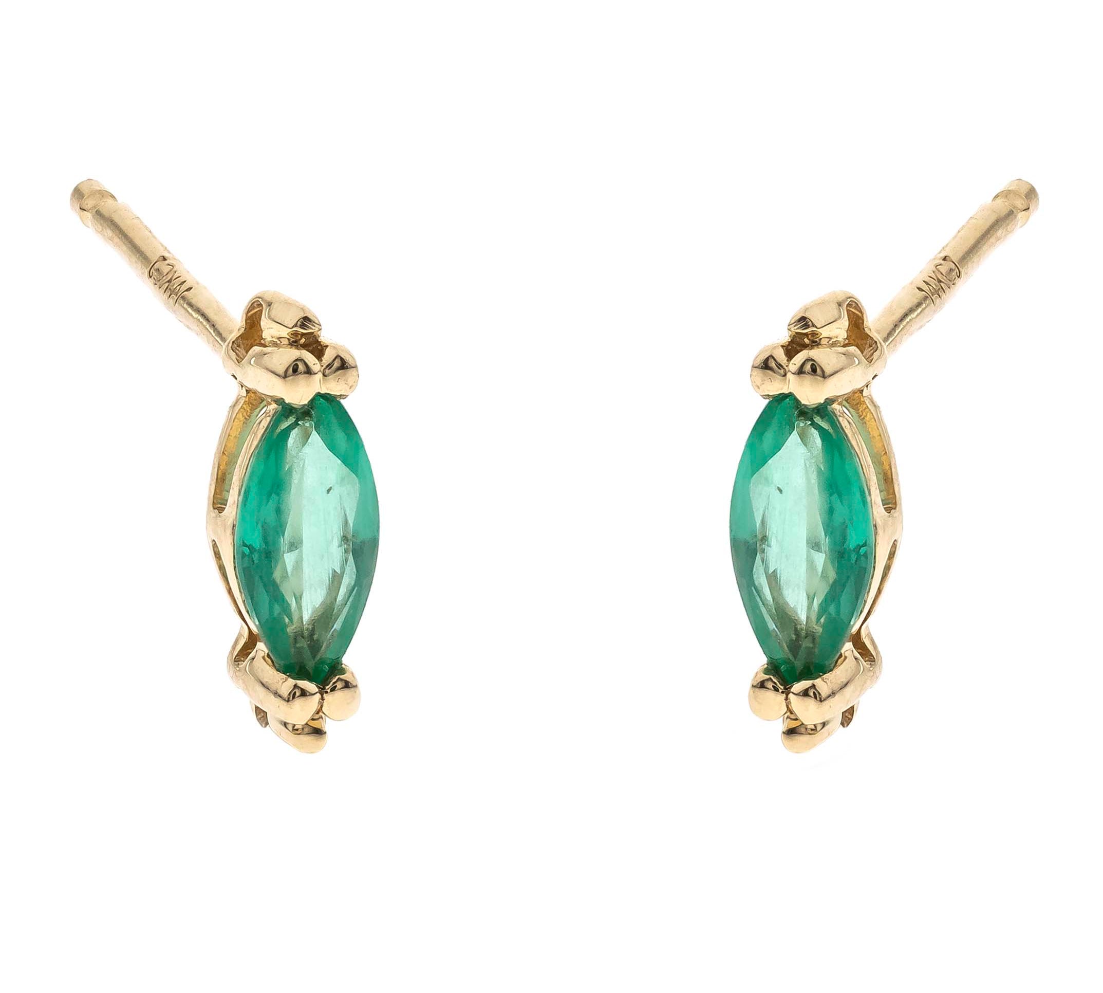 Nora 10K Yellow Gold Marquise-Cut Natural Zambian Emerald Earrings