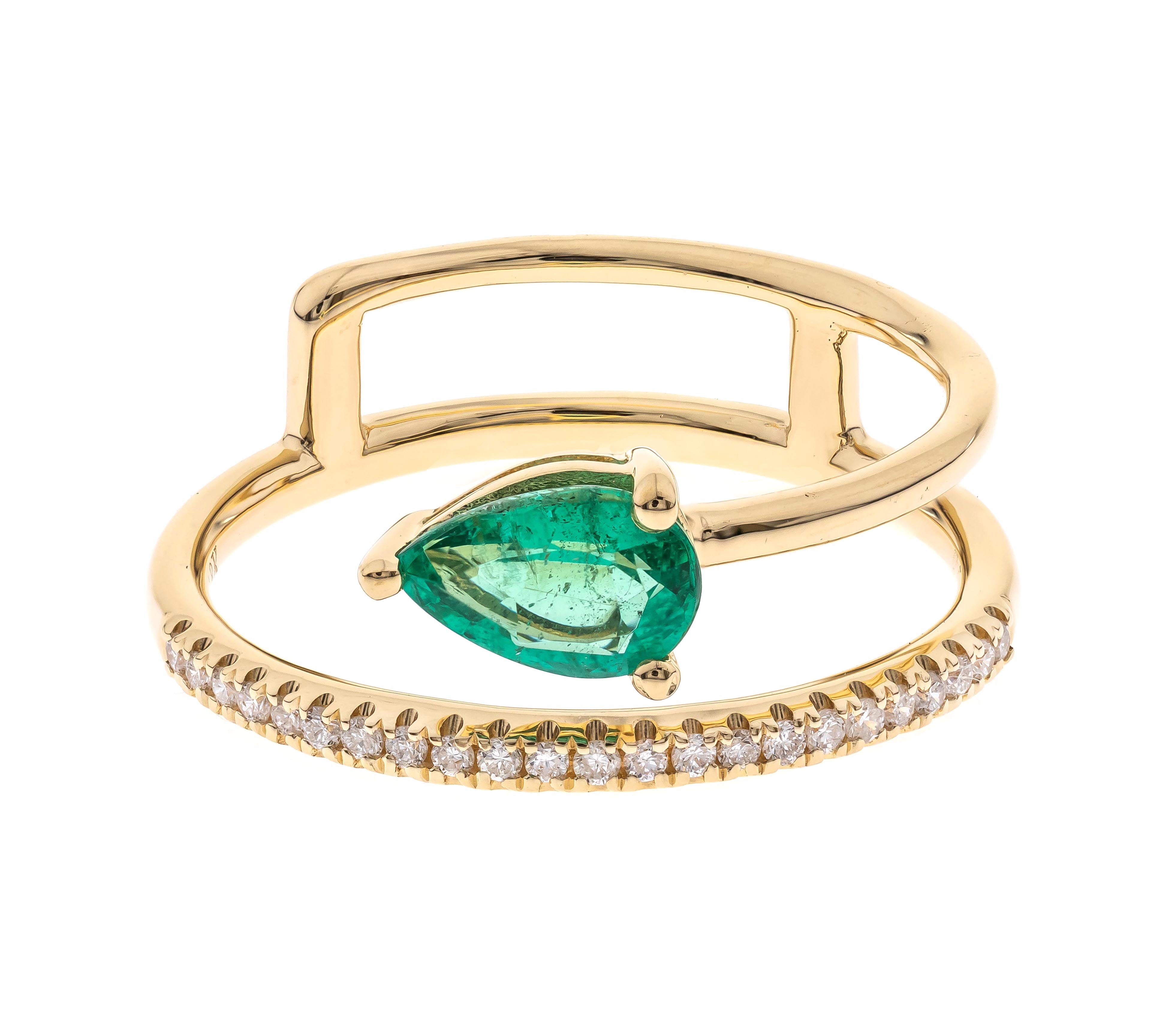 Paulina: 10K Yellow Gold Ring with Pear-Cut Natural Zambian Emerald