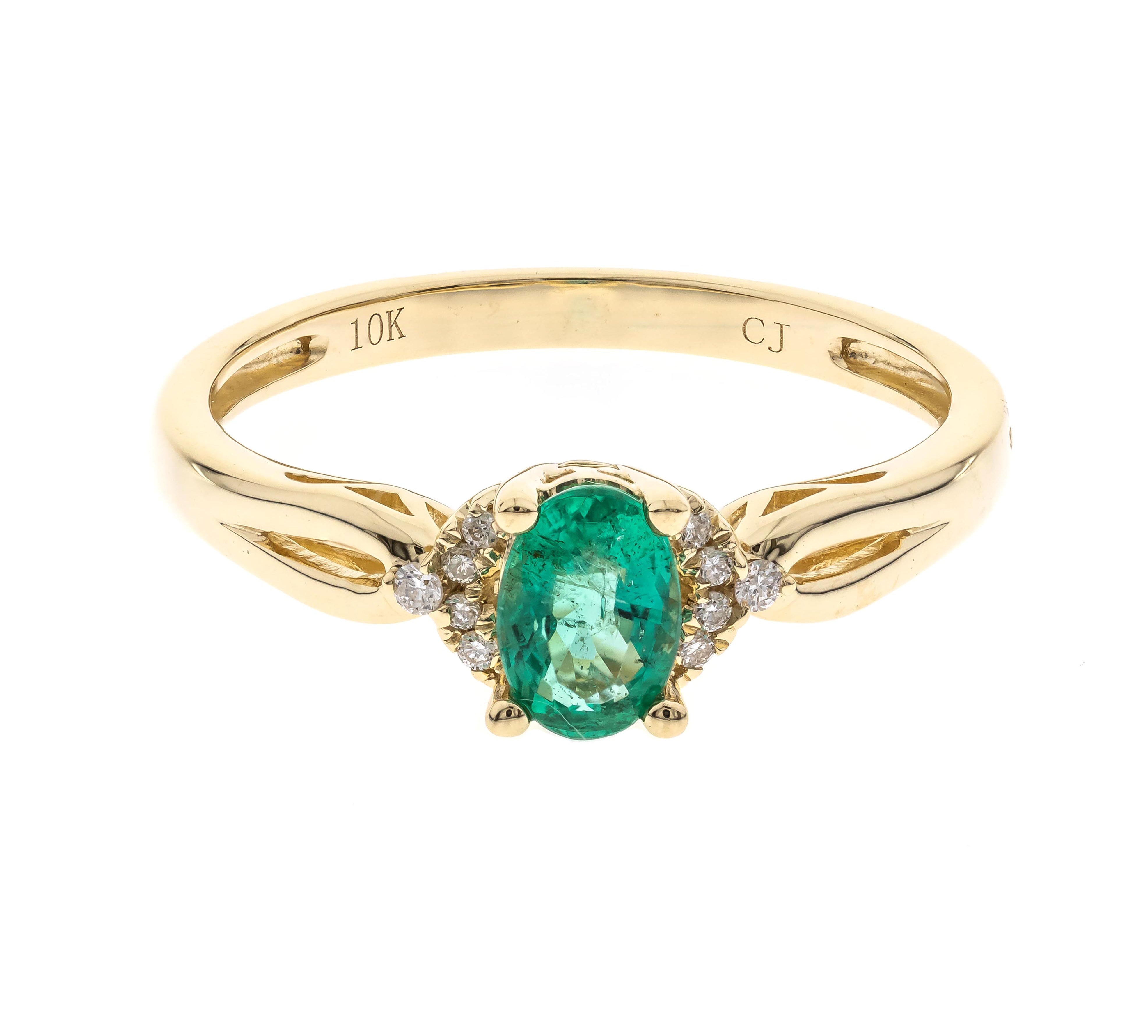 Rue 10K Yellow Gold Oval-Cut Natural Zambian Emerald Ring