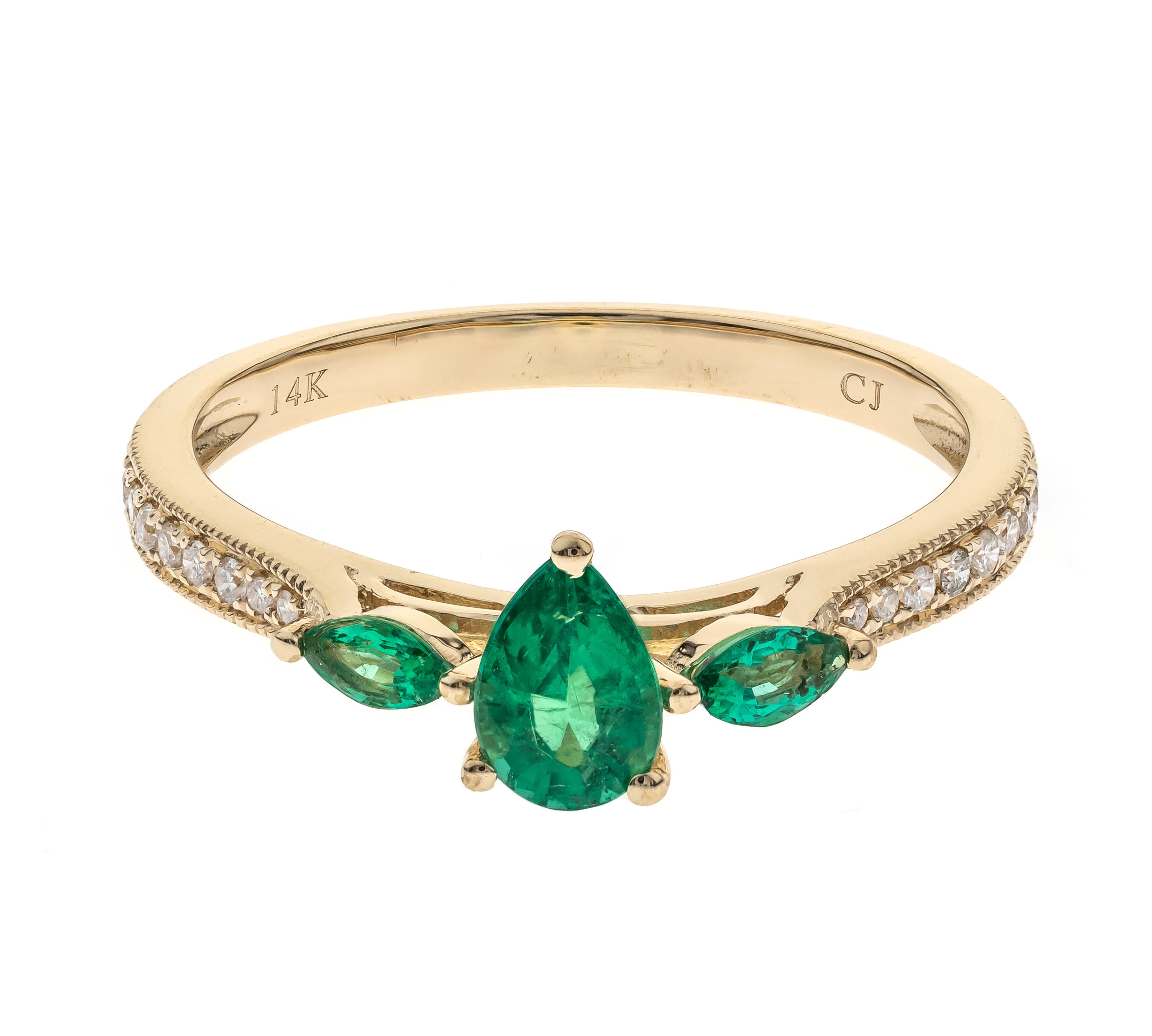 Caroline 14K Yellow Gold Pear-Cut Emerald Ring