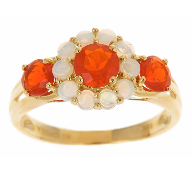 Melody 10K Yellow Gold Round-Cut Mexican Fire Opal Ring