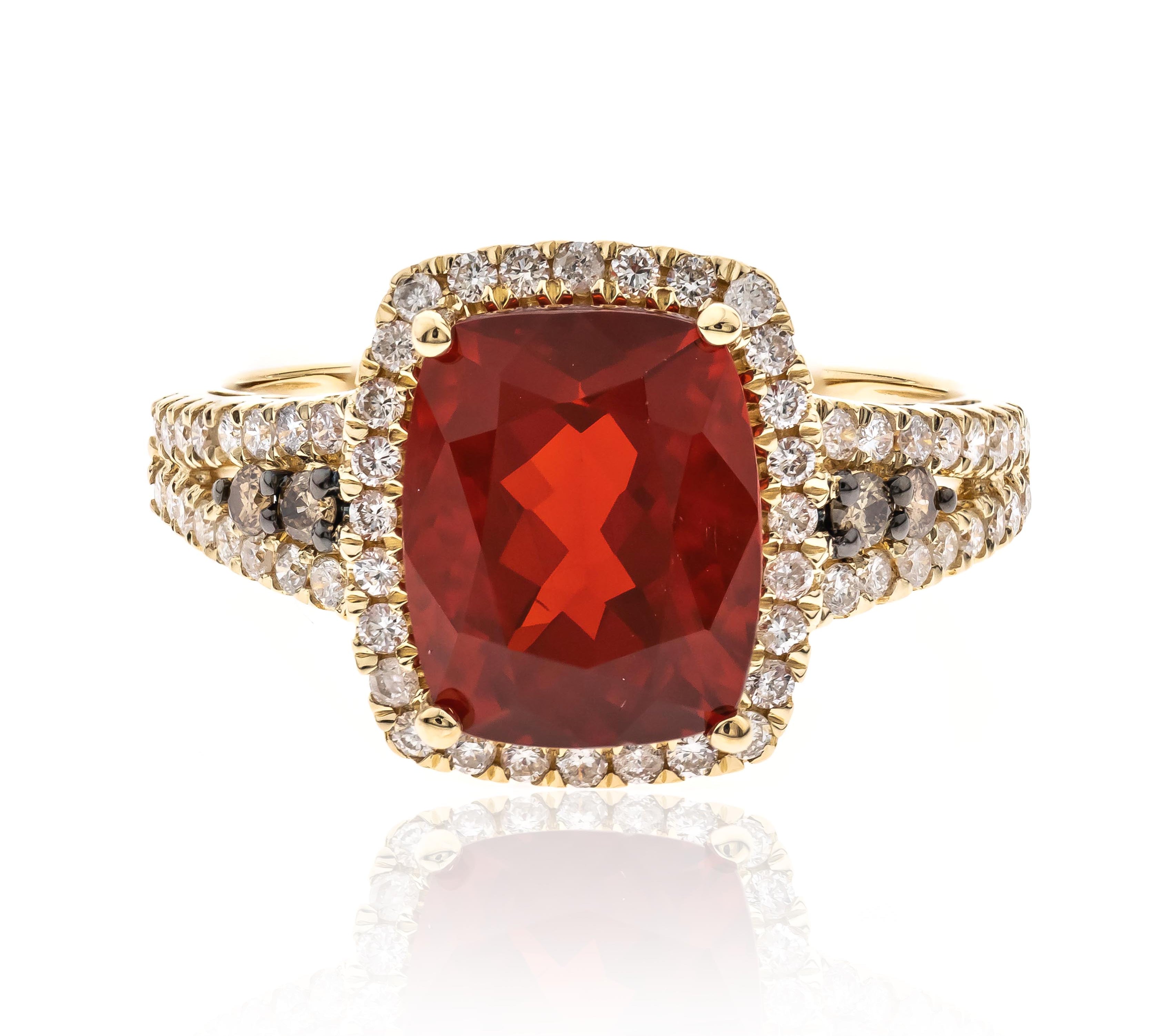 Maliyah 14K Yellow Gold Cushion-Cut Mexican Fire Opal Ring