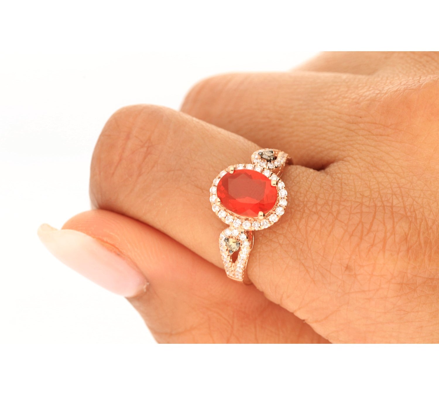 Melody 10K Rose Gold Oval-Cut Mexican Fire Opal Ring