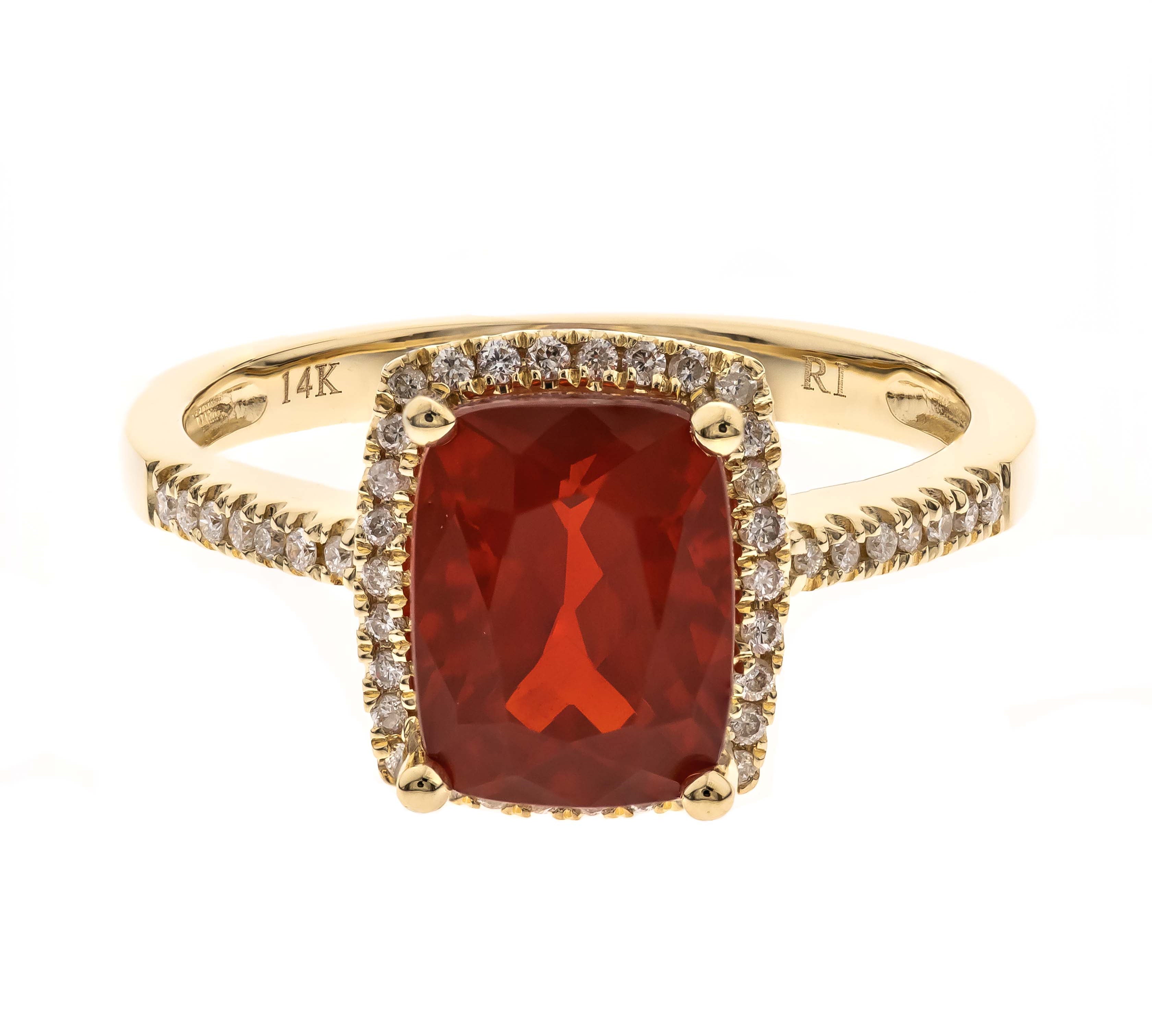 Aurelia 14K Yellow Gold Cushion-Cut Mexican Fire Opal Ring