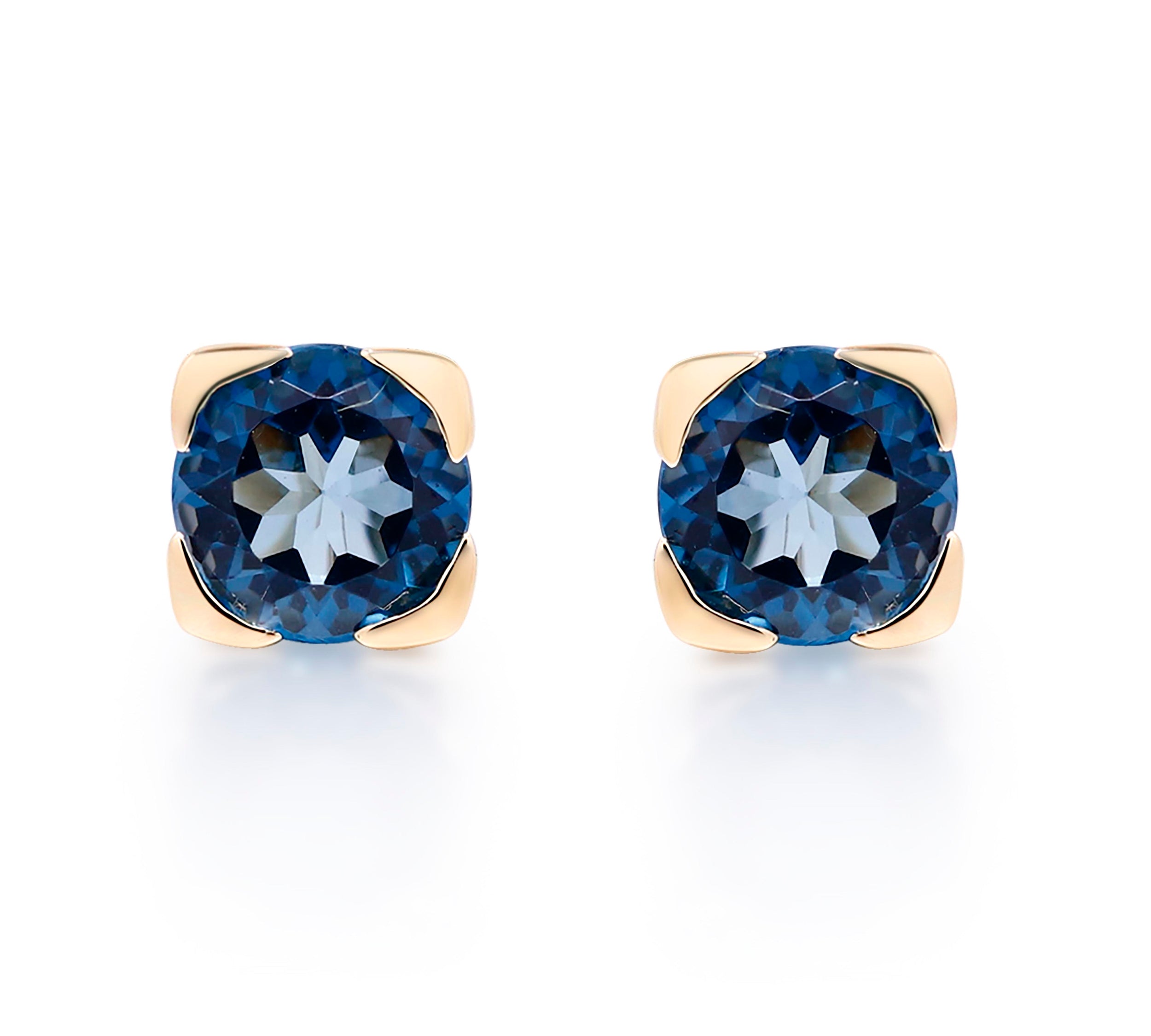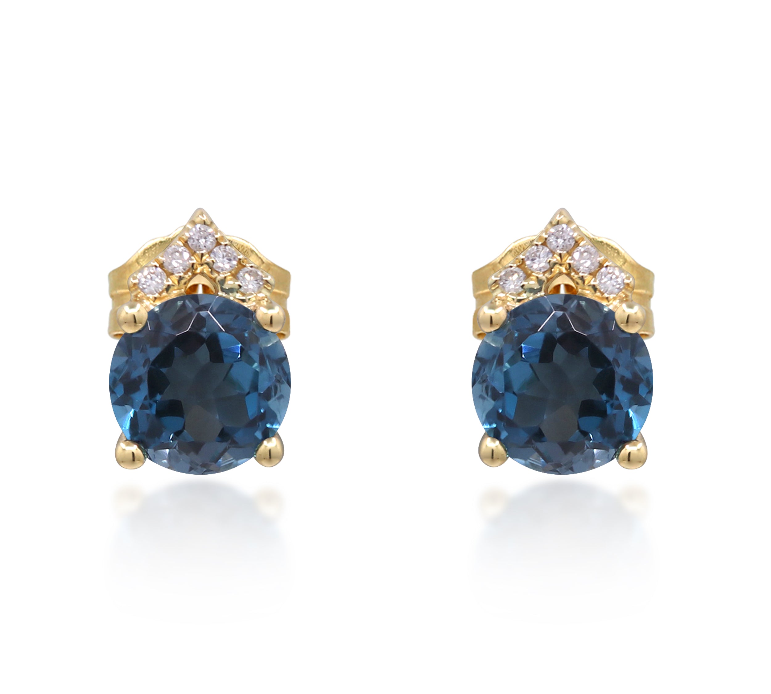 Aubrey 10K Yellow Gold Round-Cut London Blue Topaz Earring