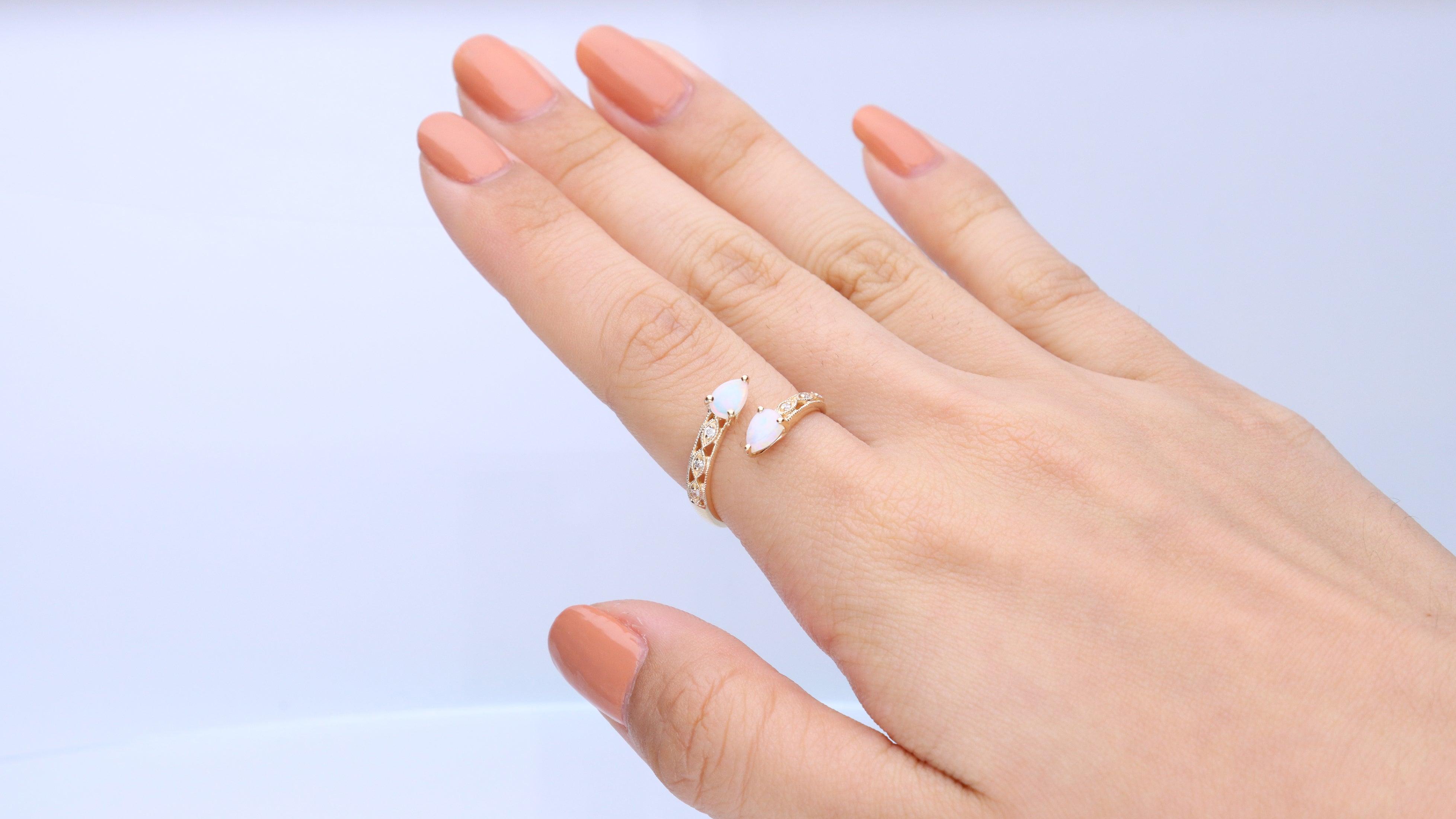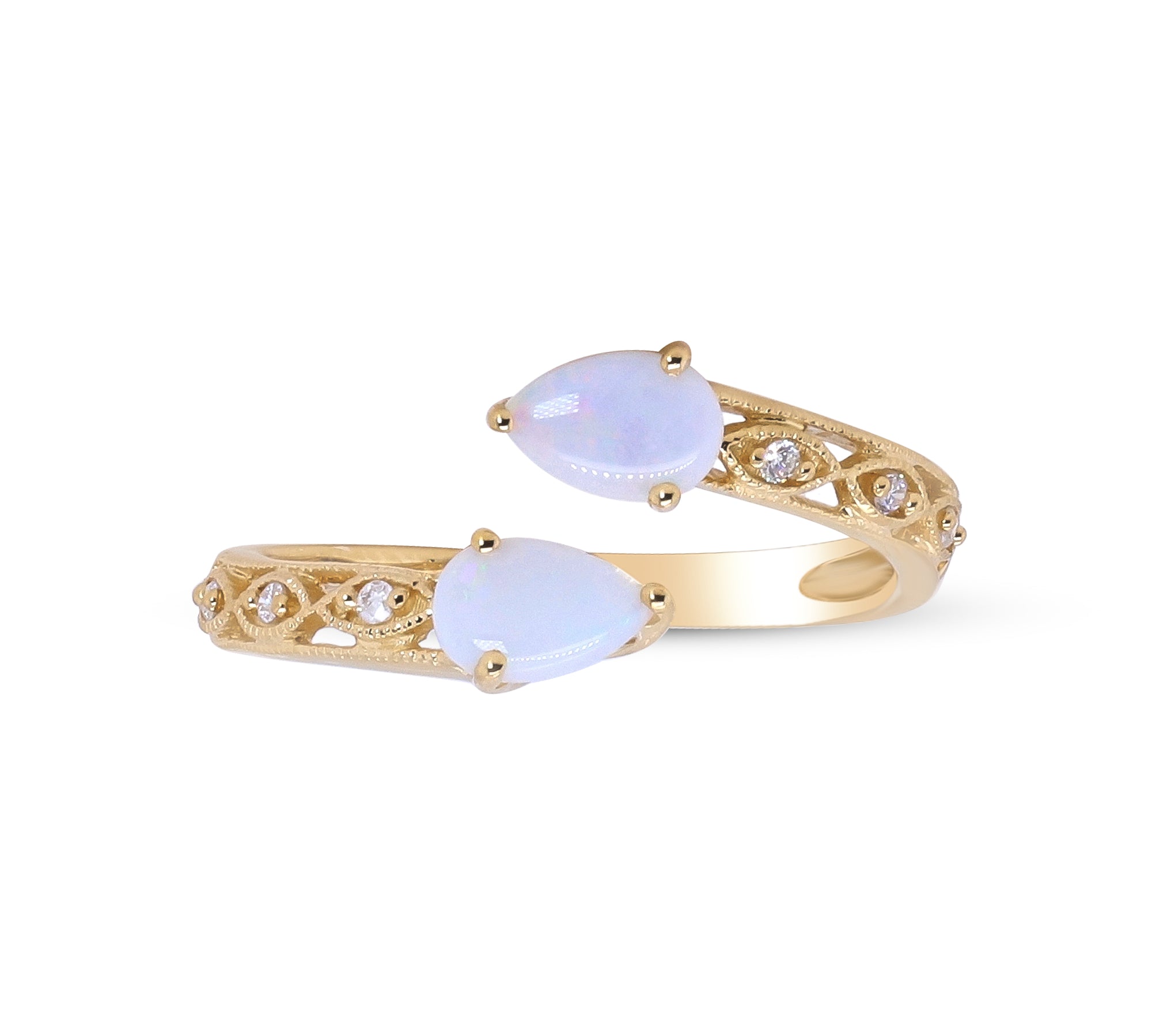 Rachael 14K Yellow Gold Pear-Cut Natural African Opal Ring
