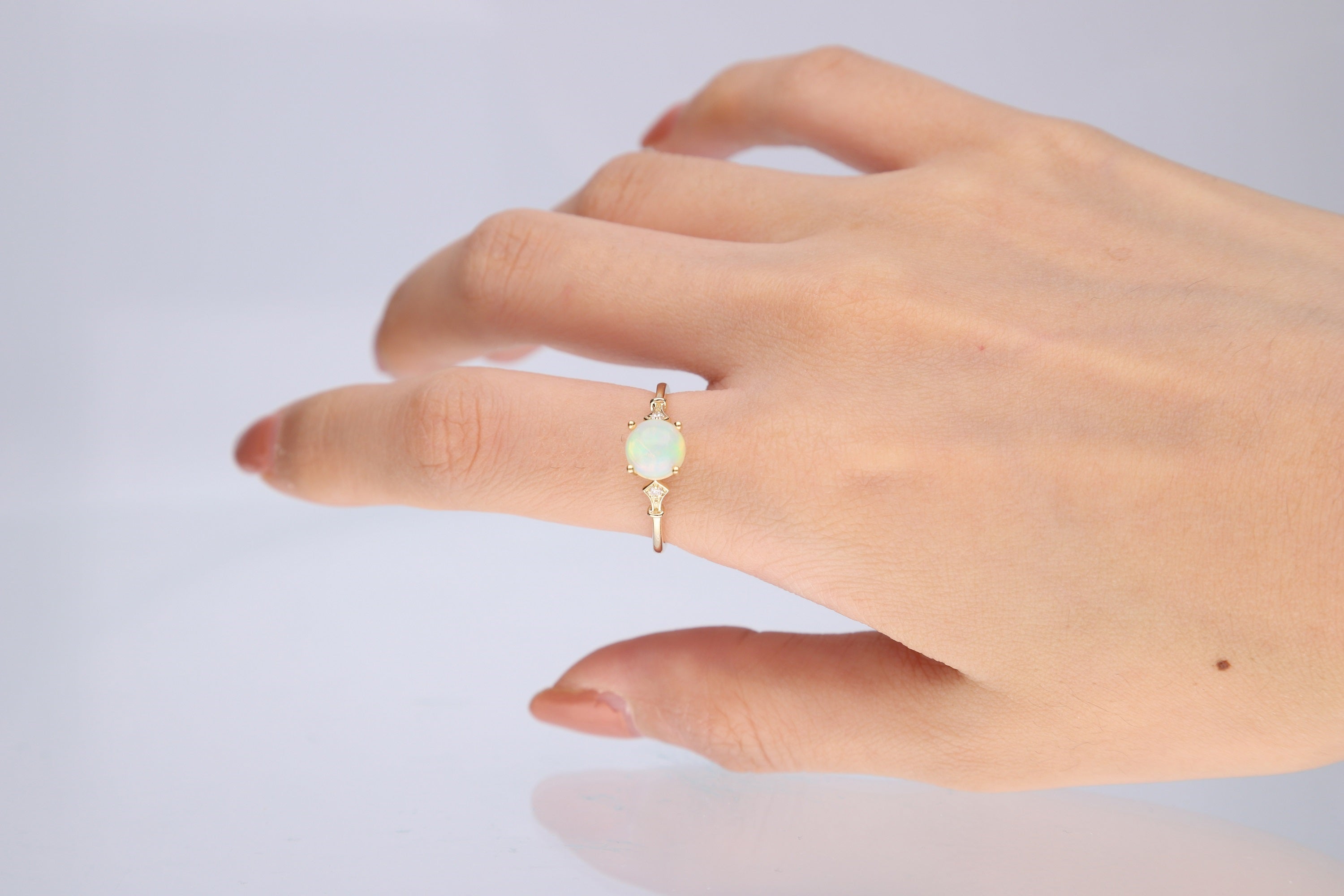 Raquel 14K Yellow Gold Round-Cut Natural African Opal Ring