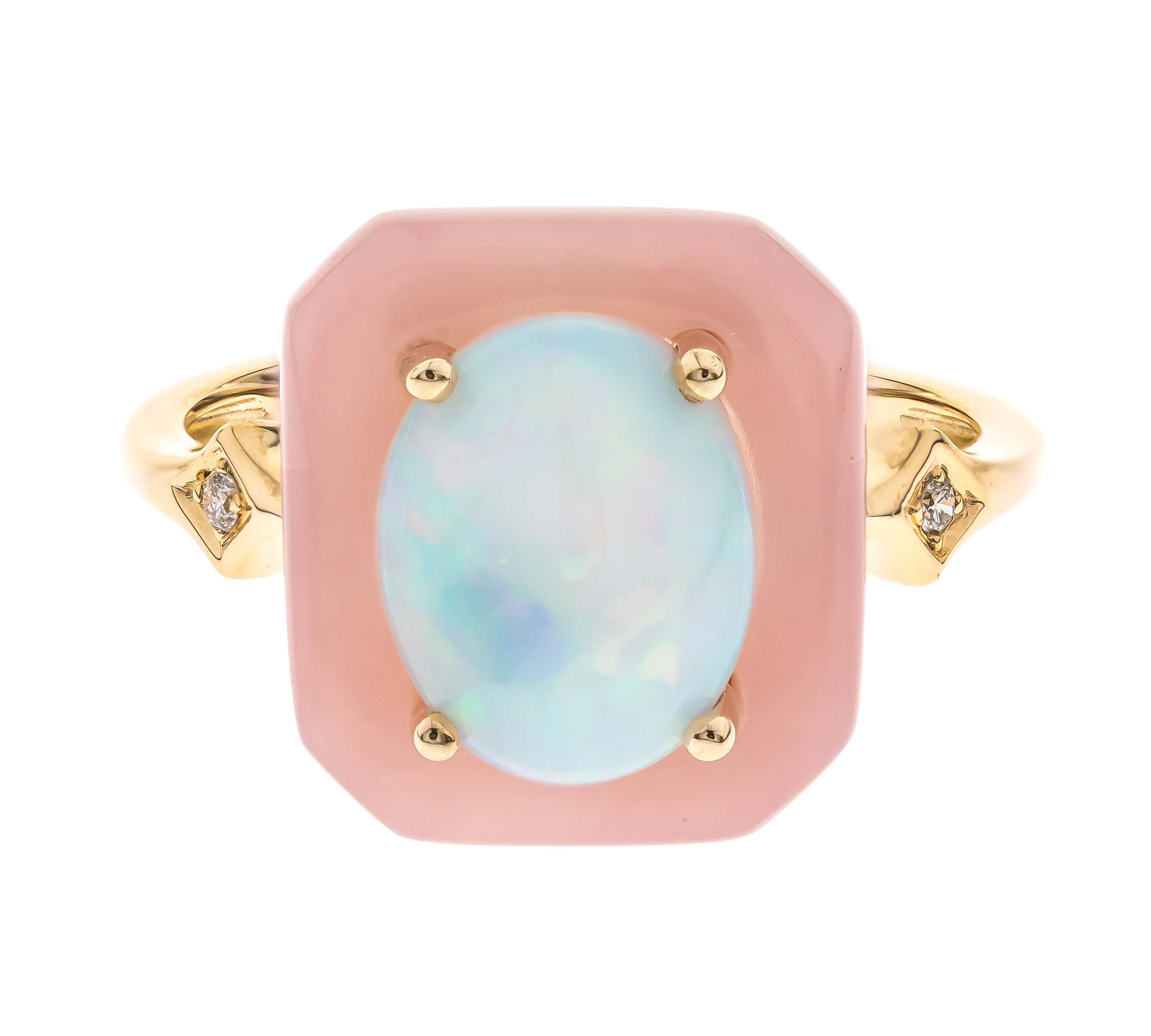 Adeline 14K Yellow Gold Oval-Cut Natural Pink Opal and Ethiopian Opal Ring