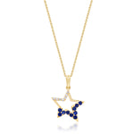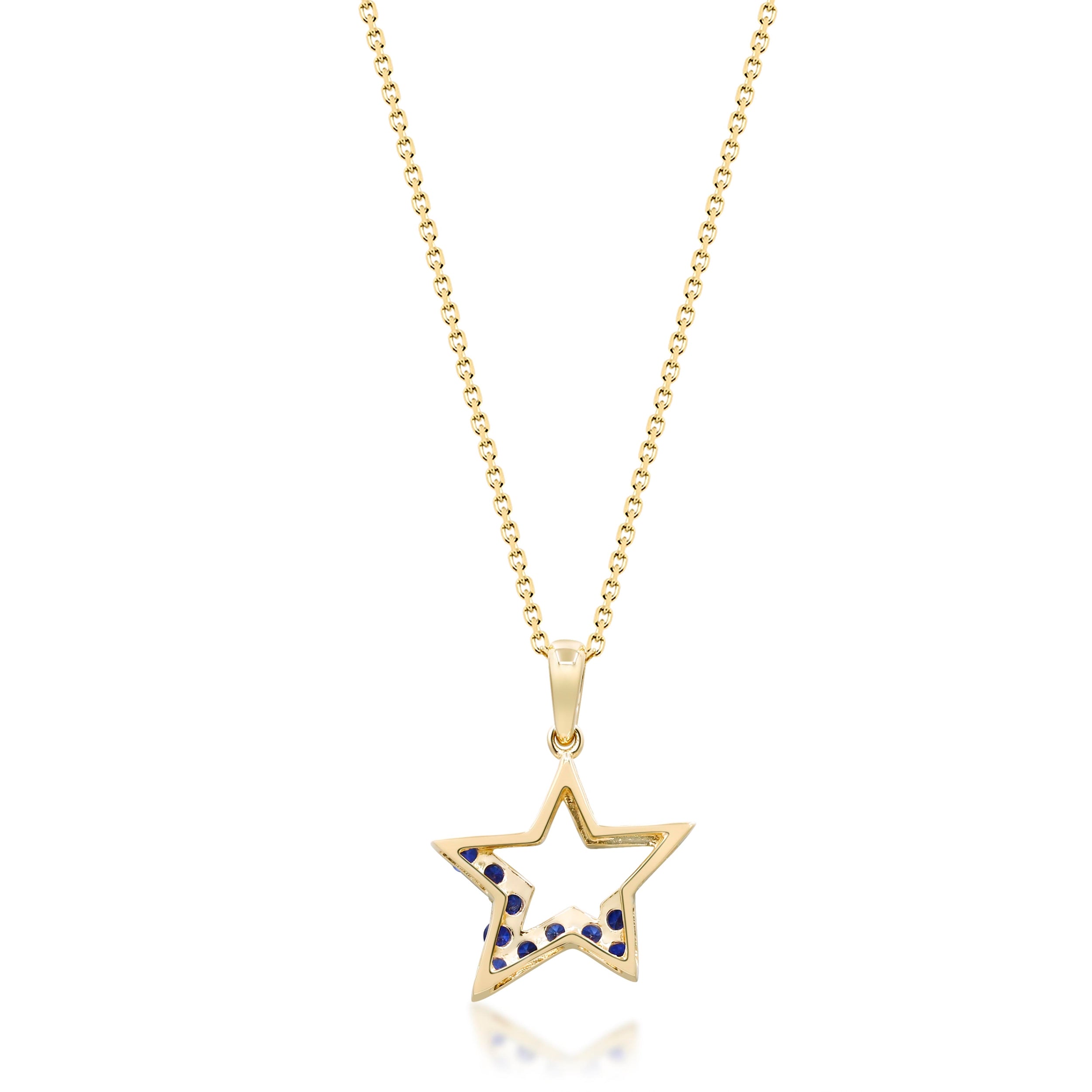 Decorate yourself in elegance with this Pendant crafted from 14K Yellow Gold by Gin & Grace. This Pendant is made up of Ceylon Blue Sapphire Round-cut (10 pcs) 0.37 and Round-cut White Diamond (7 Pcs) 0.06 Carat. This Pendant weigh 2.72 grams. This delicate Pendant is polished to a high finish shine.
